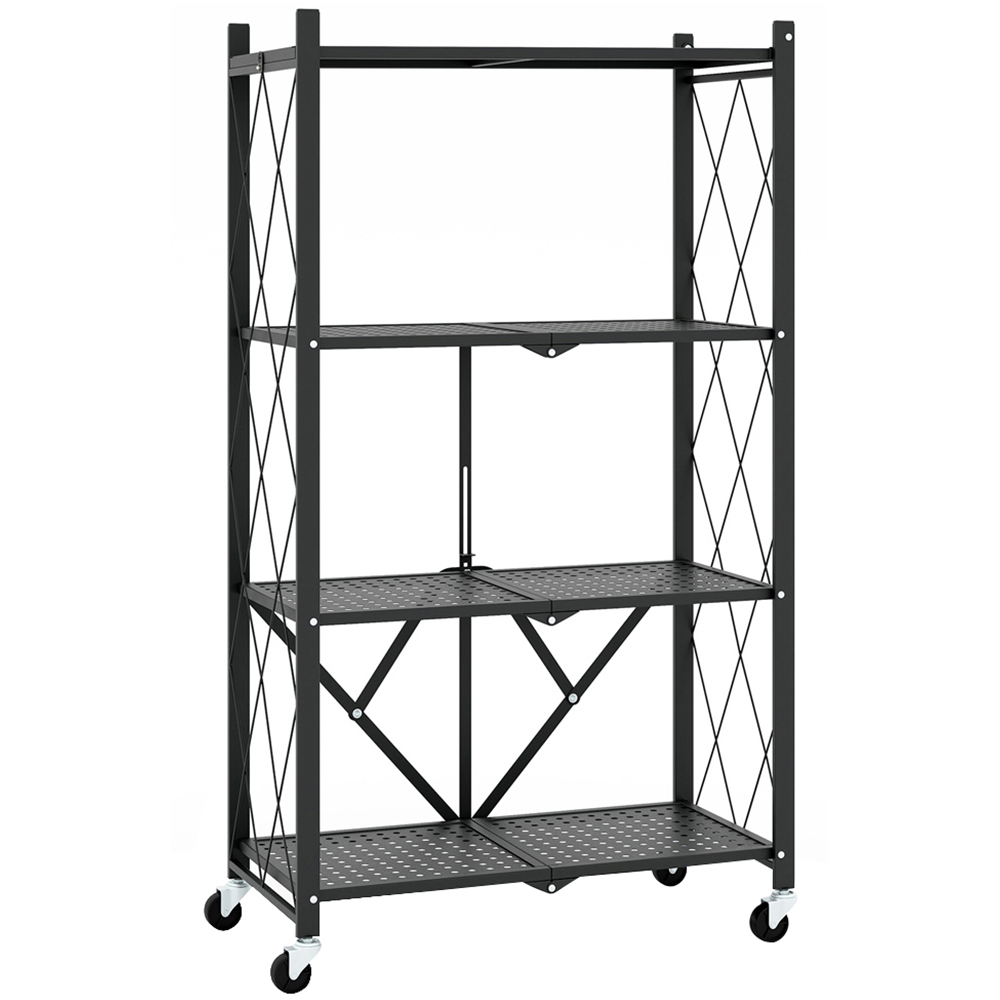 Maximise your storage and space with the sleek 4Tier Metal Foldable Collapsible Storage Rack with Lockable Wheels. Crafted for superior durability, this heavy-duty metal frame rack is perfect for any room—be it your kitchen, living room, or garage. Its anti-toppling kit ensures stability for a variety of items, while the smooth gliding lockable wheels offer both mobility and security. When space is a premium, simply collapse the unit for easy storage, keeping your living areas spacious and organised.