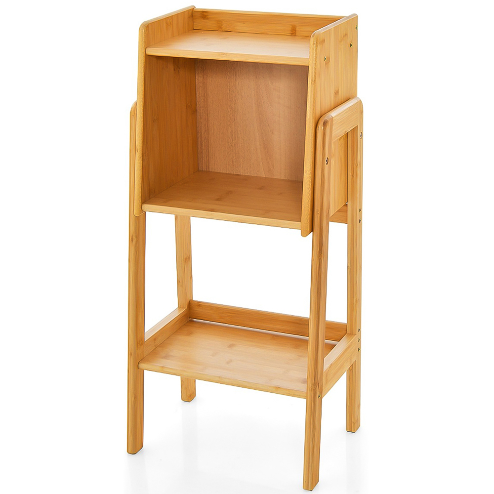 Elevate your space with the 3 Tier Free Standing Tall Bamboo Bookshelf with Legs, a perfect blend of form and function. Crafted from premium natural bamboo, this elegant bookshelf features a sturdy A-shaped frame that ensures superior stability, making it an ideal choice for those in need of a reliable storage solution. Its natural finish not only enhances the beauty of the bamboo but also adds a sophisticated touch to any room. With ample storage space, this versatile bookshelf is perfect for organizing and displaying books, plants, and decorations in your living room, bedroom, or any other area. Plus, its easy assembly means you can set it up quickly and effortlessly.