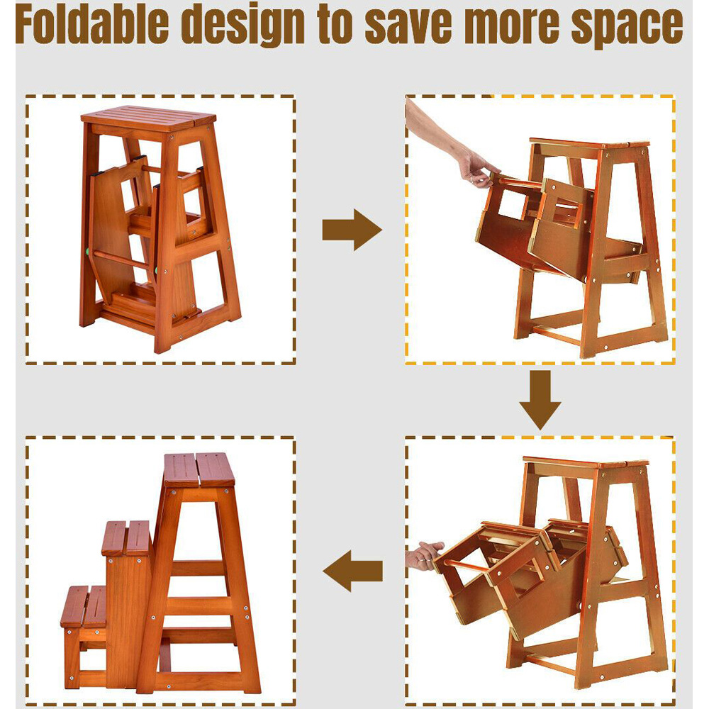 Experience the convenience of compact living with the Costway 3 Step Natural Wooden Folding Step Stool with Folding Stepladder Shelf. Crafted from hard pine wood and other high-quality materials, this folding step stool is both sturdy and wear-resistant, ensuring extended service life. With a maximum load-bearing capacity of 150kg, it combines strength and reliability for everyday use. The simple folding push-pull folding mechanism allows for easy storage and versatility. When not in use as a step stool, it can be folded and stored conveniently. This 2-in-1 stool can serve as a step ladder, an occasional stool, or even a 3-tier side table or display unit, making it suitable for the hallway, lounge, kitchen, bedroom, and more. Despite its sturdy build, the stool is lightweight, making it easy to move around your home as needed. Its smooth surface helps to clean it easily. Comes with detailed instructions for hassle-free assembly, ensuring you can set it up as quickly as possible. Whether you need an extra step in the kitchen or a decorative piece in the living room, this stool offers practicality without compromising on style.