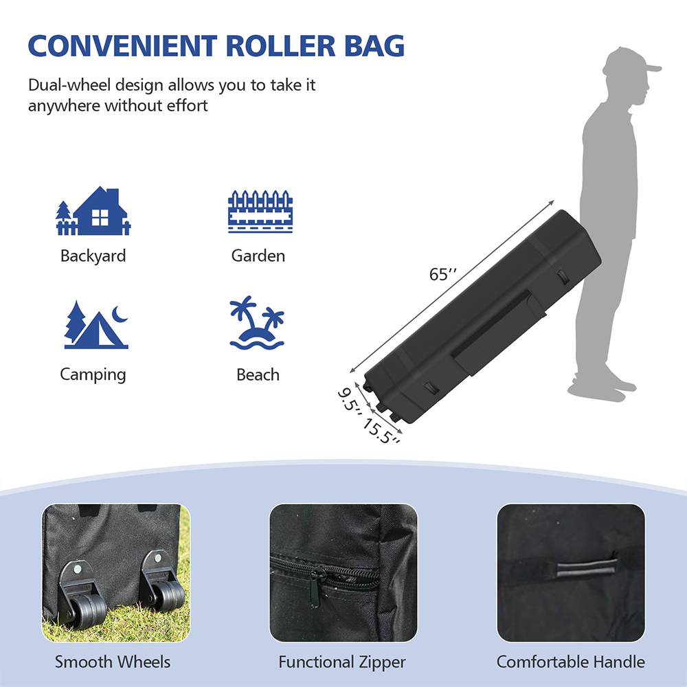 - Includes portable wheeled storage bag