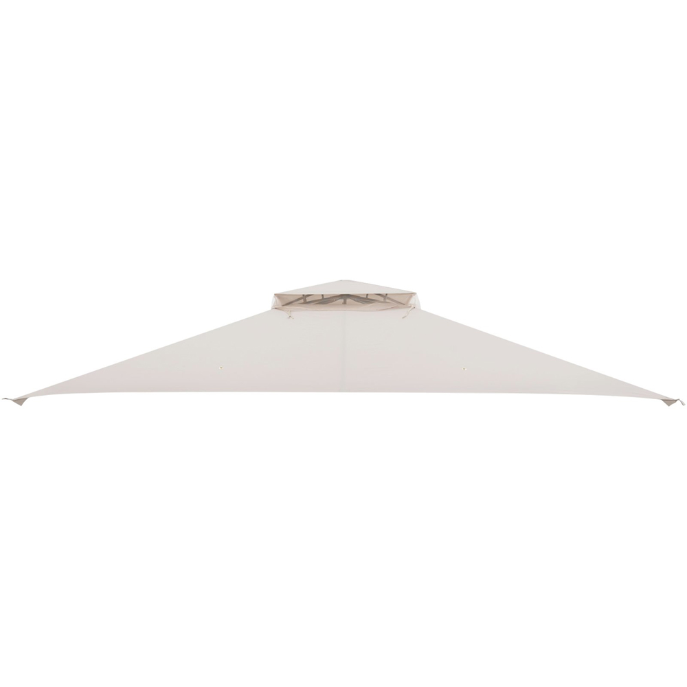 Enjoy your relaxing leisure time under this gazebo canopy cover! Made of water-resistant, flame-retardant and sun-proof coated polyester fabric, this replacement cover top is ideal for outdoor use. With the measurements of 368 x 303cm, it provides a large area to protect you against the sun and rain. The top roof is equipped with breathable mesh, which ensures good airflow when in hot weather or while barbecuing. The holes also provide efficient drainage when it rains. Thanks to the lightweight and extra side pockets, this double-tiered canopy replacement is effortless for you to assemble. It is an ideal addition to the backyard, patio, garden, etc. This large canopy replacement roof can create a cosy outdoor area for you and your family or friends to enjoy your leisure time. Made of high-quality 100% polyester which is covered with PU coating, this outdoor gazebo canopy cover has a high performance in water and sun resistance. Additionally, it is flame-retardant with a , which is safe to use when you barbecue outdoors. This canopy replacement features a double-tier design. While barbecuing, the top tier with the breathable mesh and holes will improve air circulation. Also, these holes can efficiently drain water when it rains, preventing water accumulation. With its light weight, this gazebo canopy cover is easy to carry from one place to another and convenient to store. It is practical and suitable for outdoor uses, such as outdoor parties, patio gatherings, backyard barbecues, outdoor events, etc. This gazebo replacement top is equipped with side pockets, which allow you to easily insert the frame to complete the assembly. And the top tier has straps to attach the bottom tier without effort.