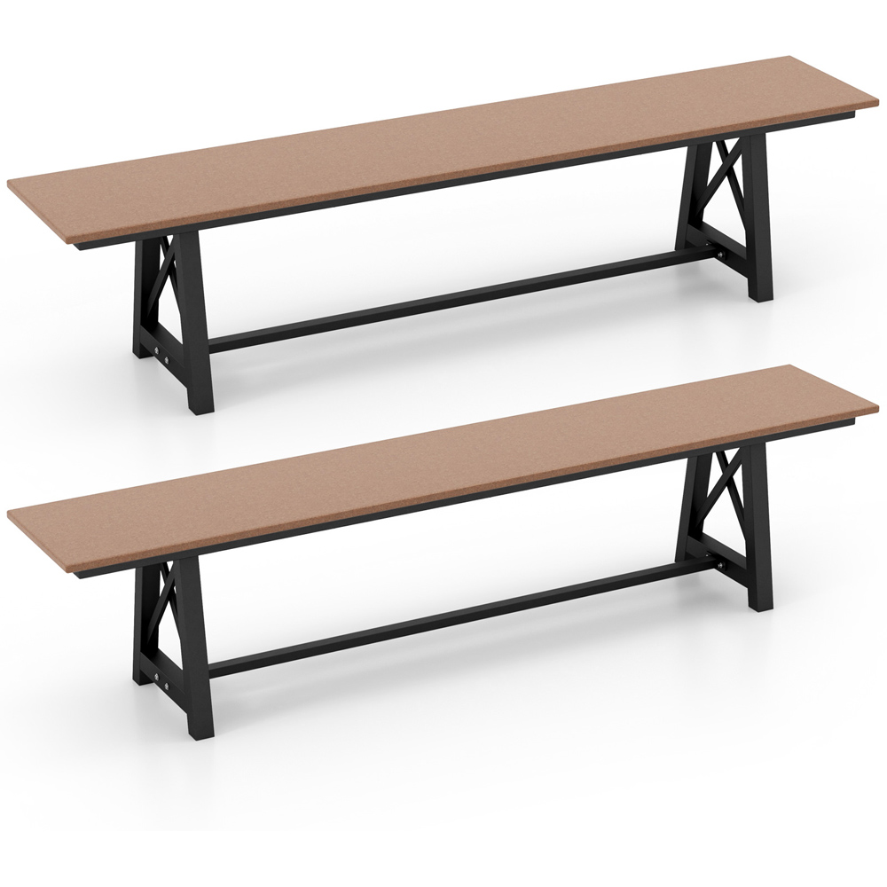 Revamp your outdoor area with the Costway 4 Seater Brown Garden Bench. This bench is made from premium, weatherproof HDPE, making it withstand all weather conditions without fading. Its heavy-duty metal frame with an X-shaped structure provides high-strength seat support and is capable of taking up to 500kg. Comfortably accommodating up to four people, it's perfect for gatherings and enhancing your enjoyment of outdoor spaces. Whether you place it in your garden, porch, or patio, this bench invites relaxation and adds a touch of tranquillity to any setting. The overall dimensions are H41 x W35 x L135cm.