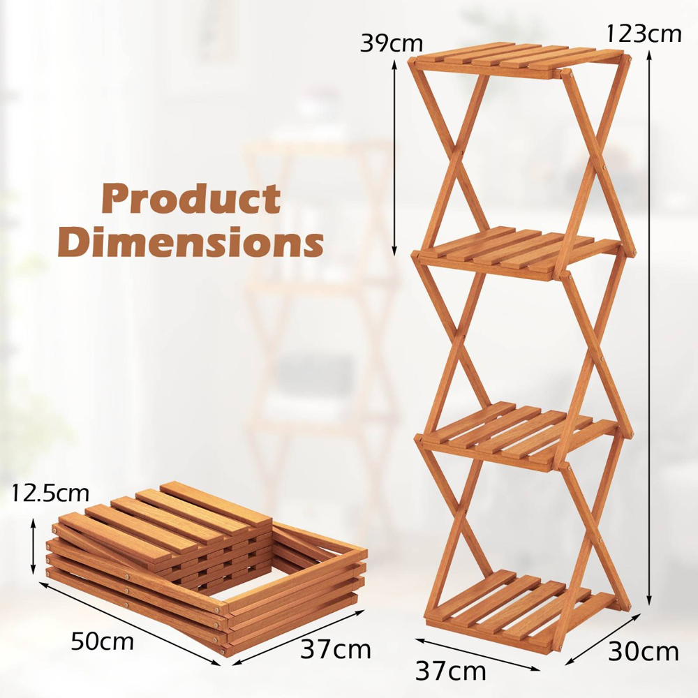 Elevate your home's organisation and style with the Free Standing Shoe Rack, designed with a sturdy wood frame and a stable X-shaped structure. This versatile rack not only keeps your shoes in order but also serves as an elegant plant stand or bookshelf, thanks to its four-tier design with ample 39cm spacing between shelves. Crafted from high-quality wood treated with teak oil, it promises durability and a sophisticated look. Its quick folding design makes it perfect for space-saving in small rooms or apartments, while the stylish hollow slat design adds a natural, airy feel to any space.
