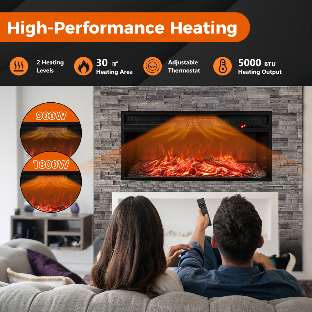 Experience the warmth and charm of the 86 cm 5 BTU Recessed Electric Fireplace Insert, complete with a remote control that allows you to tailor your indoor atmosphere effortlessly. With nine different flame brightness levels and the ability to adjust temperatures from 18°C to 36°C, this electric fireplace insert is a beacon of comfort. Its energy-efficient design can heat spaces up to 30 m², making it an ideal addition to any room. The built-in overheat protection ensures safety while its quiet operation allows you to relax without disturbance. Whether you're setting the scene for a special occasion or seeking solace from the cold, this fireplace insert adapts to every season with its flame-only or flame and heat options.