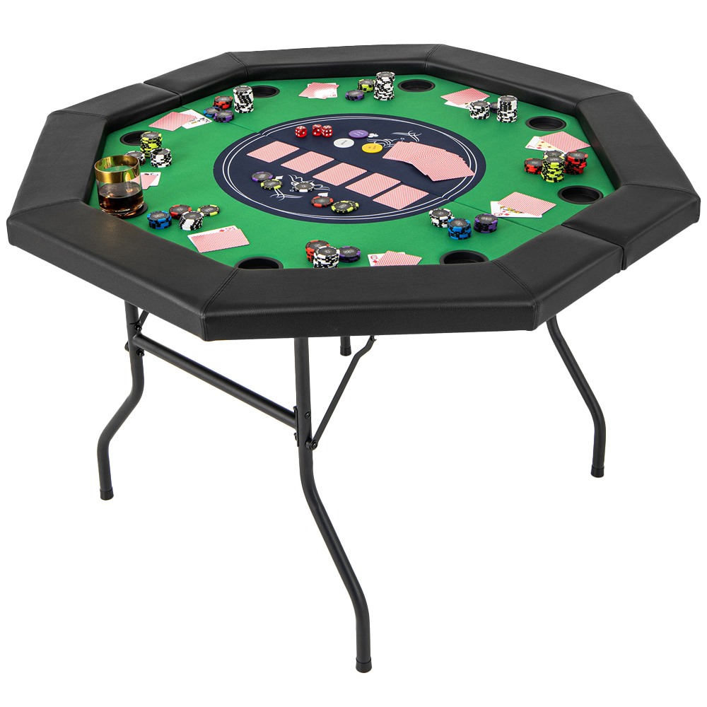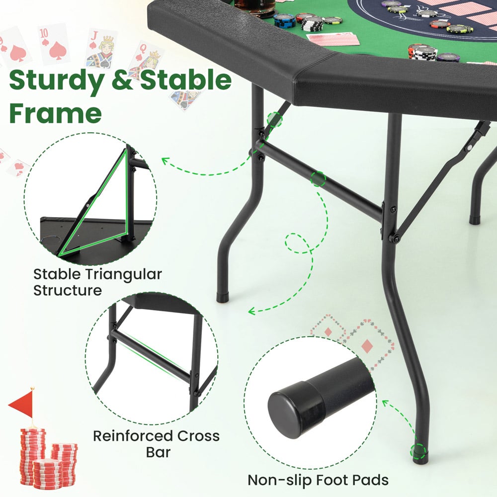 Elevate your game nights with the 130cm foldable poker table, a must-have for any enthusiast looking to host up to eight players. Its robust metal legs and padded rails ensure a stable and comfortable experience during those intense Texas Hold'em sessions or casual card games. The convenience of its foldable design allows for easy storage and transport, making it perfect for both indoor and outdoor use. With its casino-grade felt surface, this blue poker table not only looks professional but also enhances the gameplay by providing a smooth, noise-reducing area for shuffling cards. Whether it's for a family gathering, a party with friends, or a competitive game night, this table is designed to bring excitement and a touch of casino flair to any occasion.