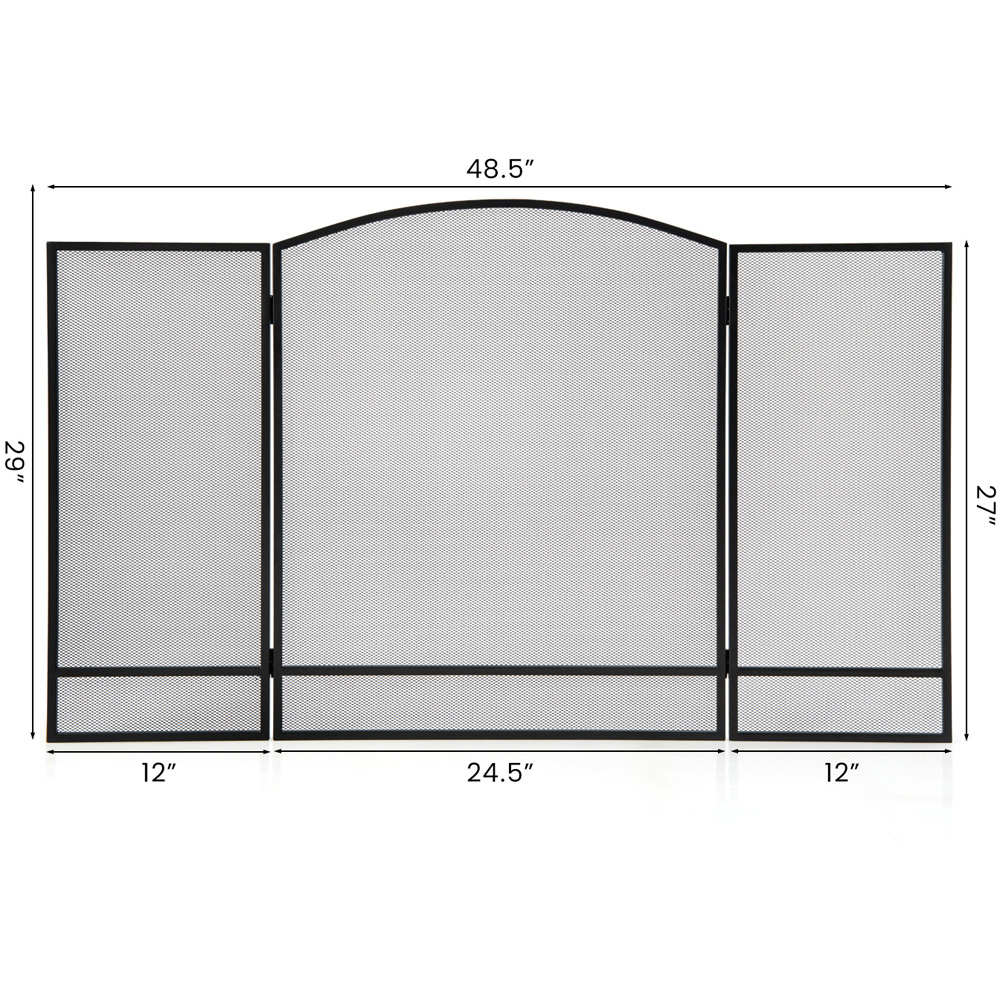 Make a soothing and practical addition to your home space with the Costway Black 3 Panel Folding Fire Guard. It is made using a powder-coated metal frame and is sturdy and durable enough to withstand high temperatures for long-term use. The mesh screen can efficiently prevent open flames and embers from coming out to avoid accidental fires. The soothing pattern makes this fireplace screen ideal for your fireplace. This three-panel guard with flexible hinges can be shaped accordingly to surround the fireplace and keep your children or pets safe from flying sparks. This fireplace screen is easy to move with a lightweight design and you can fold it for compact storage when not in use.
