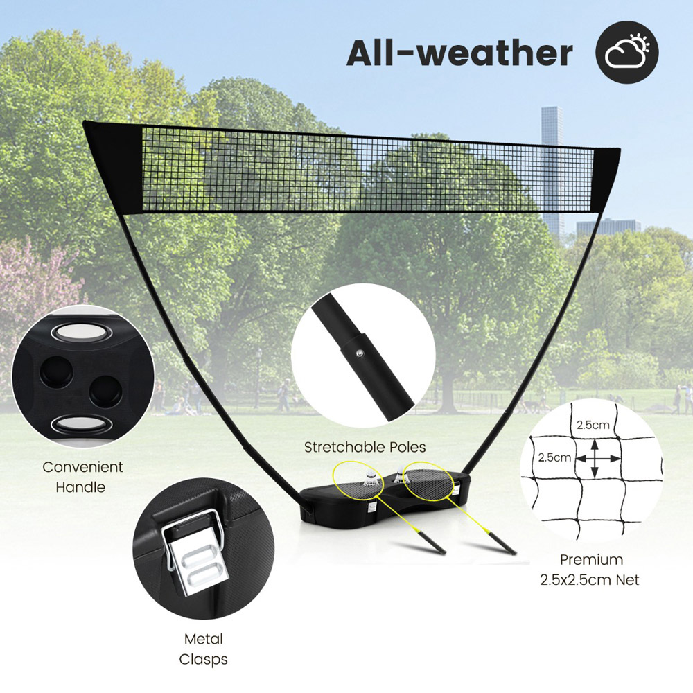 Elevate your outdoor gatherings with the Costway Black All In One Portable Badminton Net Set, a versatile addition to any garden, beach, or camping trip across the UK. Designed for quick and hassle-free setup, this set allows you to transition from packing to playing in minutes, ensuring more fun time and less prep time. Its durable construction and portable design make it ideal for carrying to various outdoor locations, while the high-quality materials ensure longevity and resistance to wear. Whether it's badminton, volleyball, or tennis, this multi-use net set is perfect for keeping the family active and entertained.