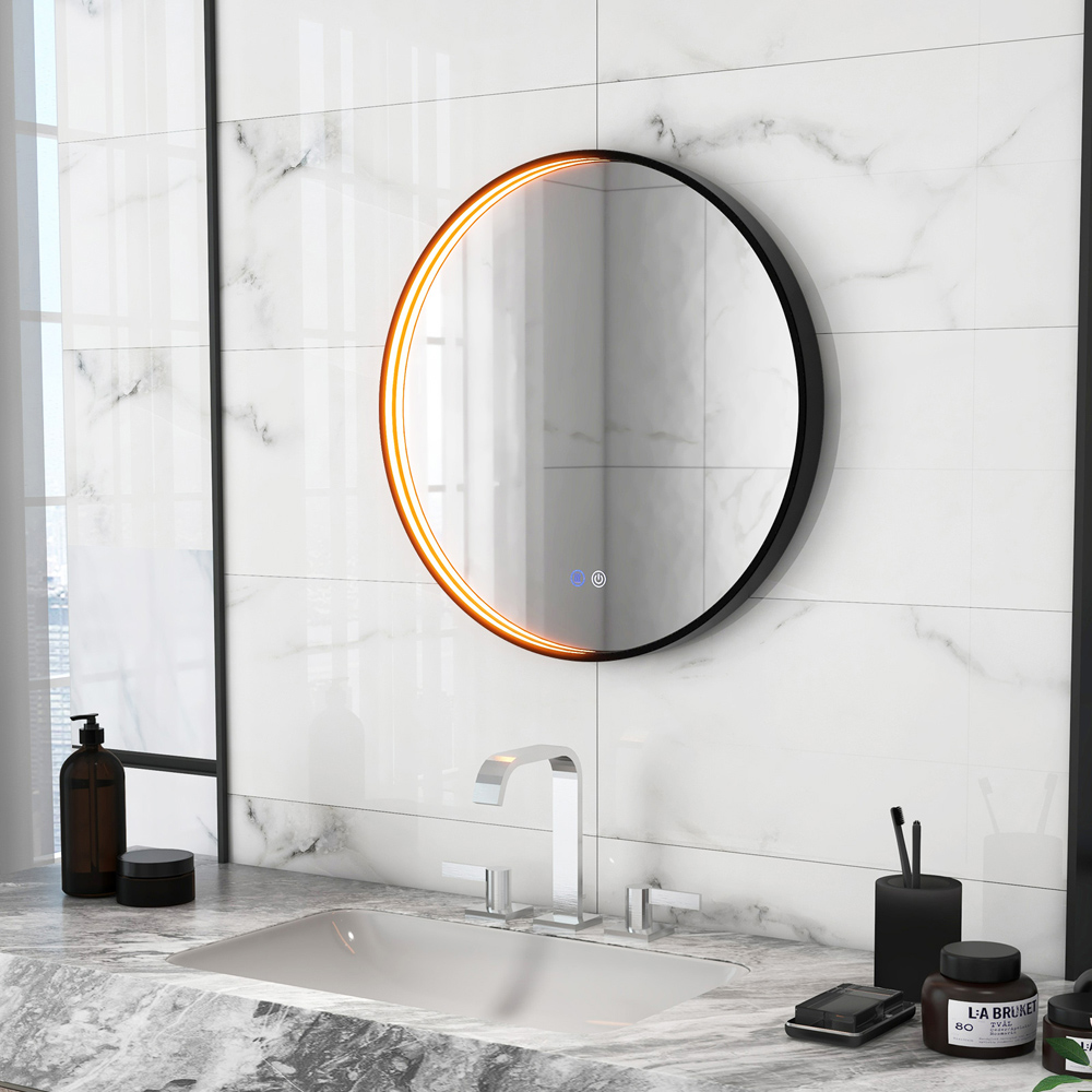 Elevate your bathroom experience with the Costway Black LED Round Bathroom Mirror, featuring LED lights and an anti-fog design in a sleek black finish. This vanity mirror is crafted using HD copper-free silver glass for a superior and clear reflection, perfect for precise makeup applications. With adjustable lighting control, you can select from three colour temperatures and adjust the brightness to your preference, thanks to the smart memory function that recalls your last setting. The innovative anti-fog design ensures a crystal-clear reflection even in steamy conditions, enhanced with a safety-conscious 1-hour auto-shutoff feature. The durable aluminium frame resists deformation, ensuring longevity, while the flexible installation options allow for seamless integration into any bathroom setup.