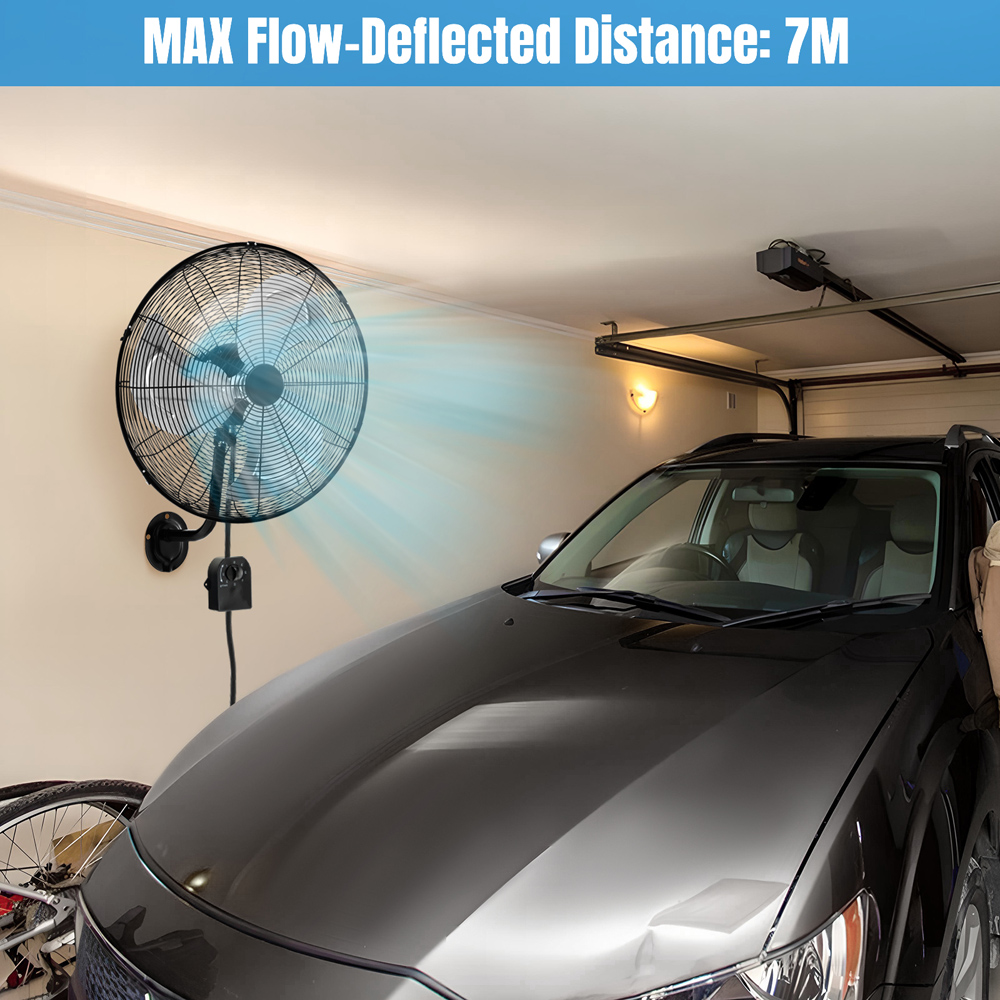 Equipped with powerful double ball-bearing motors and three aluminium blades, this ventilating fan provides strong wind and the fan speeds are adjustable for your different needs. This ventilating fan also features wide oscillation and its tilting head is adjustable too, ensuring wide air circulation and allowing you to find the desired wind direction. The wall-mounted design will save valuable ground space and the installation is easy with instructions and accessories. Made of metal housing and aluminium blades, the wall mount fan is durable for long service life. Moreover, this wall mount fan is suitable for both household and commercial use, such as patio, garage, basement, workshop, warehouse, and more.