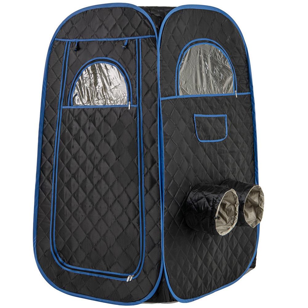 Elevate your relaxation routine with the Portable Steam Sauna Tent, featuring a powerful 1000W steam generator and customizable settings that cater to your comfort and safety. This versatile sauna tent offers nine heat settings and a timer adjustable from 15 to 90 minutes, allowing you to tailor each session to your personal relaxation needs. Safety is prioritized with overheat and dry run prevention features. Designed to accommodate up to two people, it includes adjustable leg holes for dual person use, enhancing the spa experience with a friend or loved one. Additionally, the inclusion of a foot massager, foldable chair, mat, and carry bag ensures a comfortable and convenient setup, while the option to add essential oils or herbs allows for a customised aromatherapy experience. Whether you're aiming to reduce stress, soothe muscle soreness, or simply enjoy a moment of peace, this sauna tent is an excellent addition to your wellness routine.