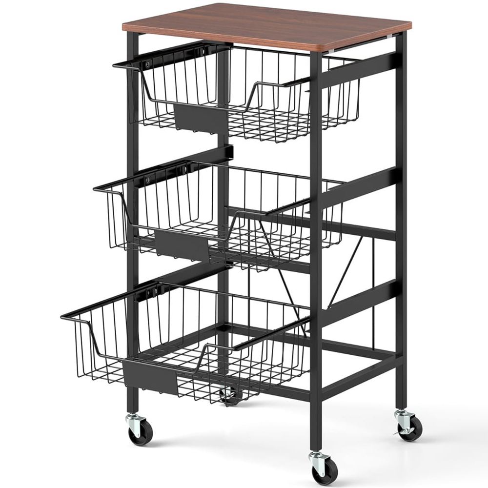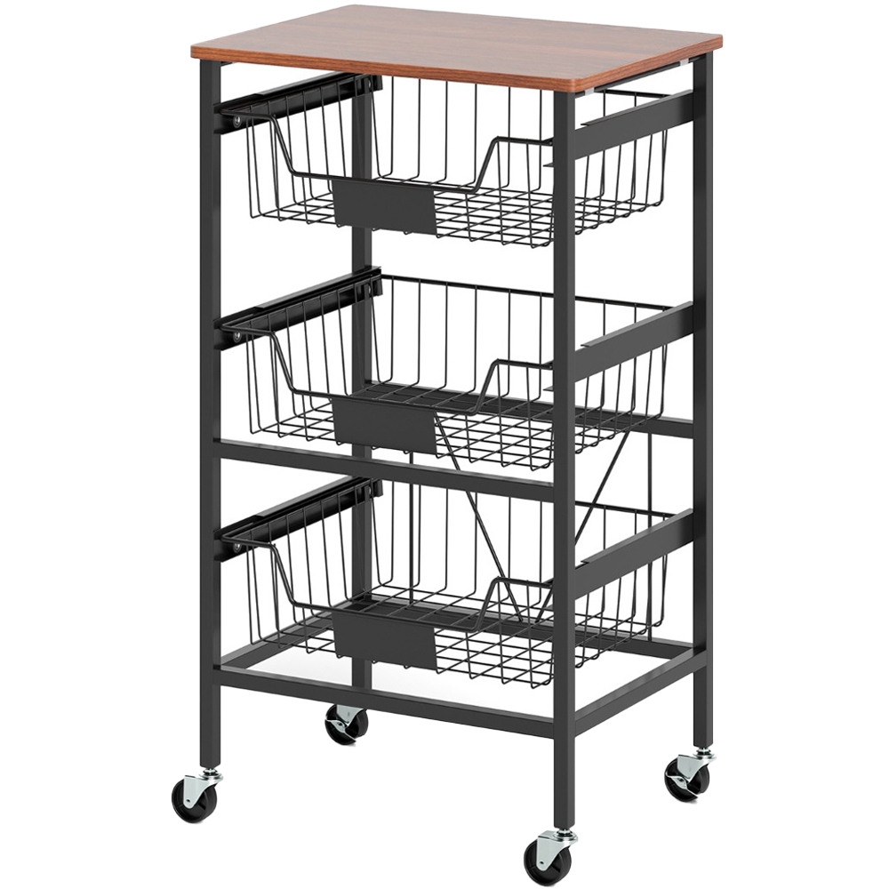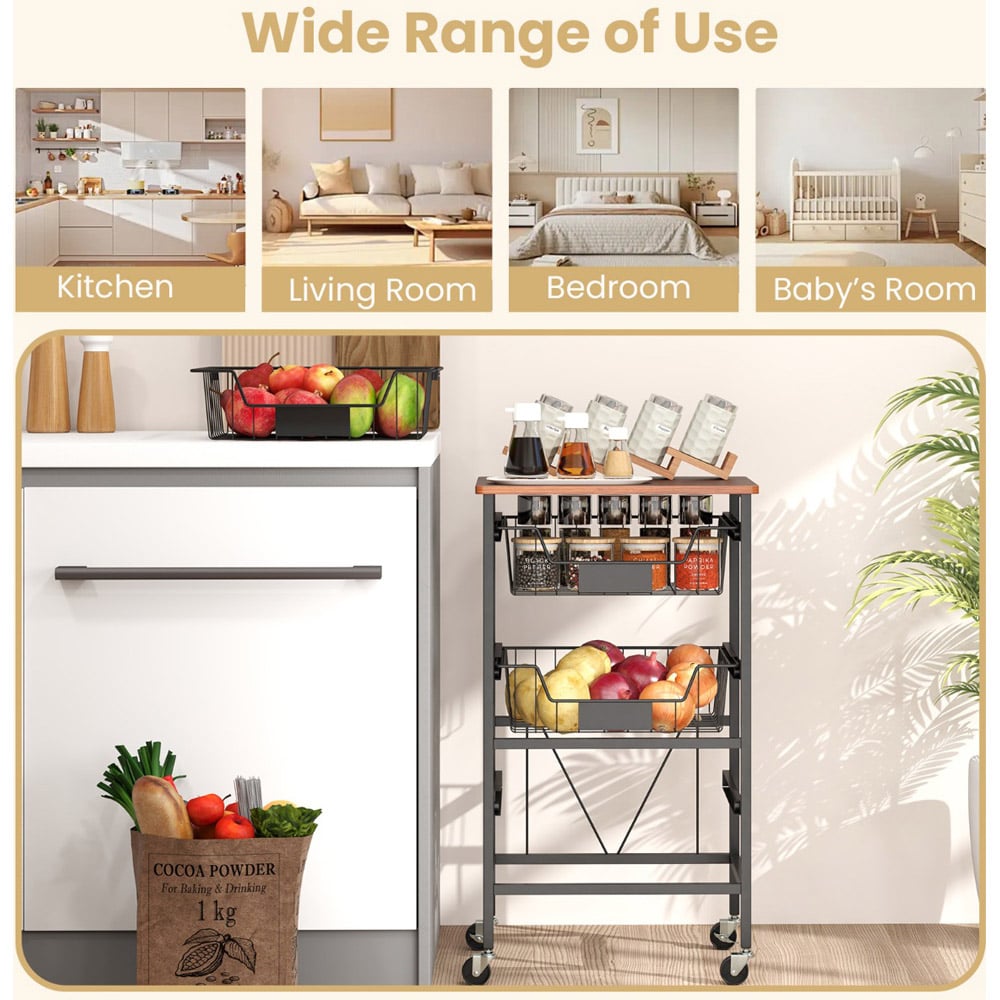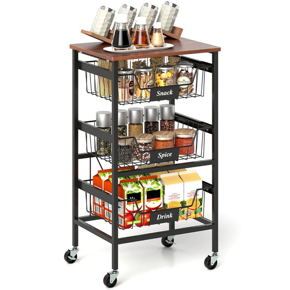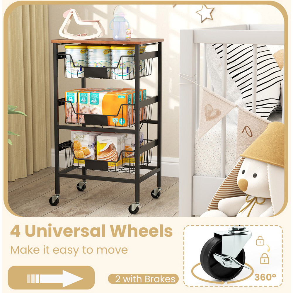 Maximise your space and maintain order in your home with the four-tier Kitchen Storage Cart, featuring a smooth wooden top and versatile pull-out baskets. This cart is not just a practical storage solution but also a mobile one, thanks to its smooth universal wheels, two of which are lockable for stability. Ideal for a variety of settings, from kitchens to bedrooms, it allows for easy categorisation of items with DIY chalk labels on each basket. Whether it's storing kitchen essentials or organising books and crafts, this cart ensures everything is right where you need it, when you need it.