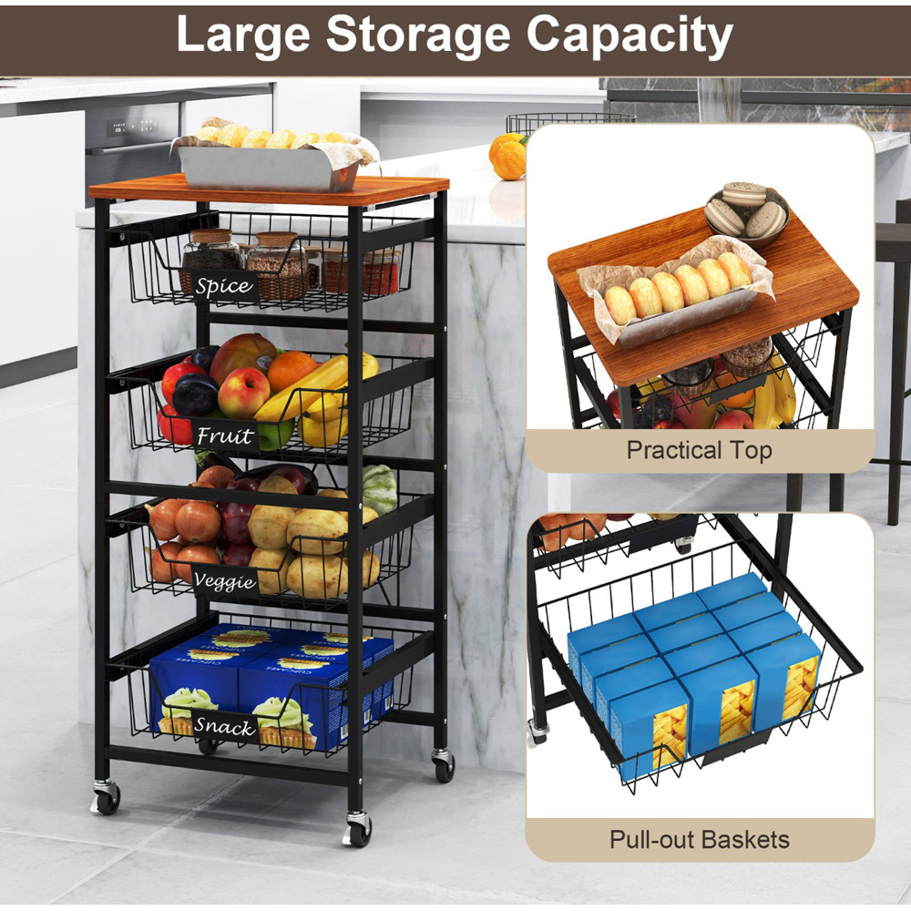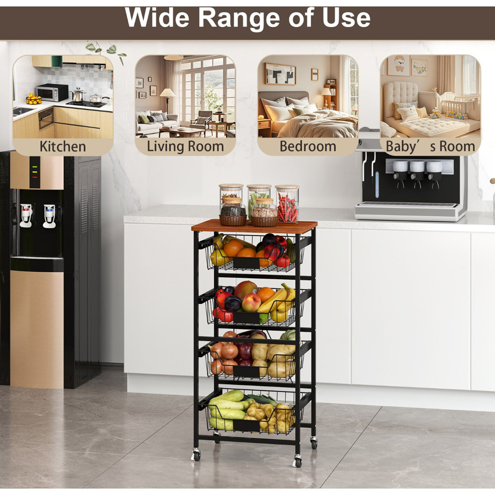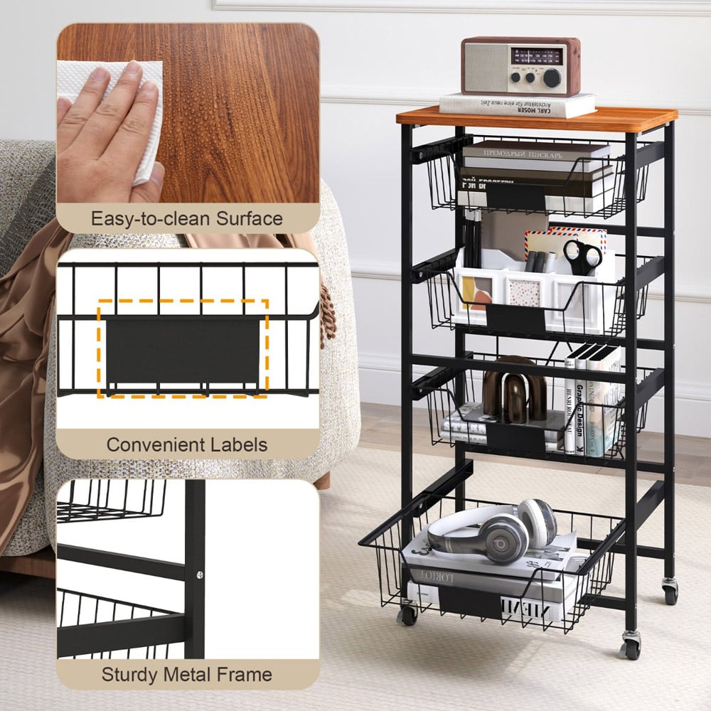 Maximise your space and maintain order in your home with the five-tier Kitchen Storage Cart, featuring a smooth wooden top and versatile pull-out baskets. This cart is not just a practical storage solution but also a mobile one, thanks to its smooth universal wheels, two of which are lockable for stability. Ideal for a variety of settings, from kitchens to bedrooms, it allows for easy categorisation of items with DIY chalk labels on each basket. Whether it's storing kitchen essentials or organising books and crafts, this cart ensures everything is right where you need it, when you need it.