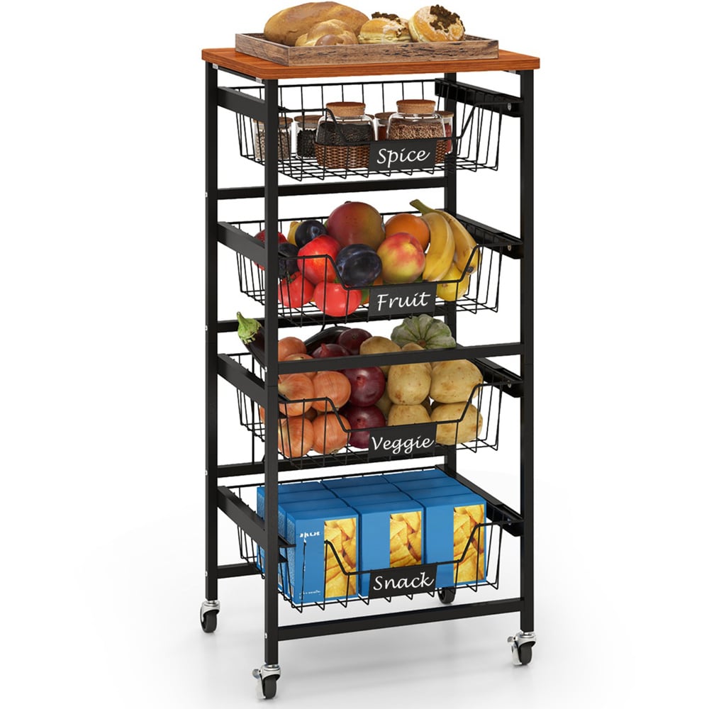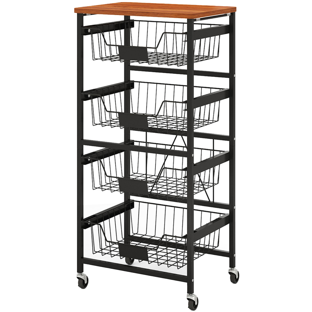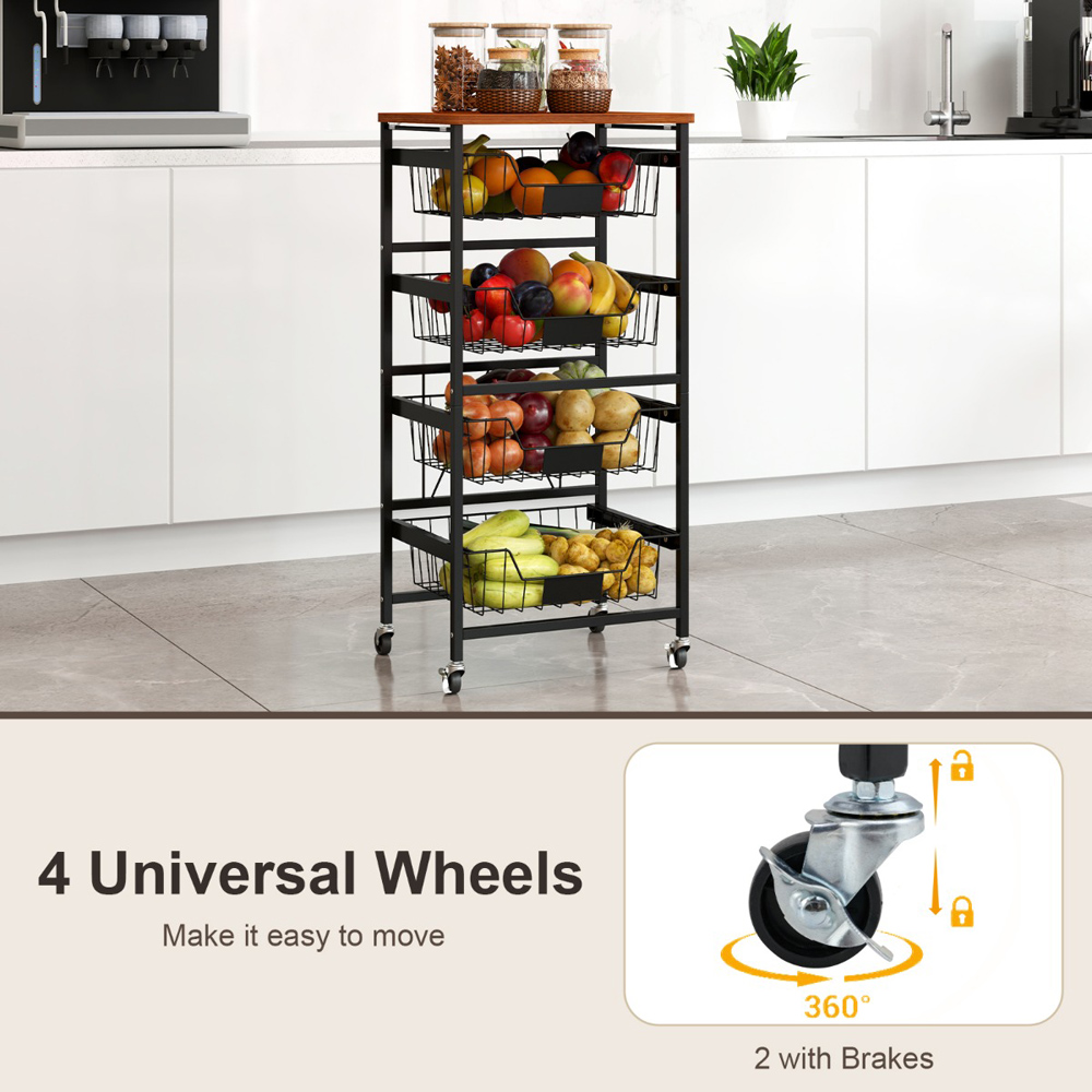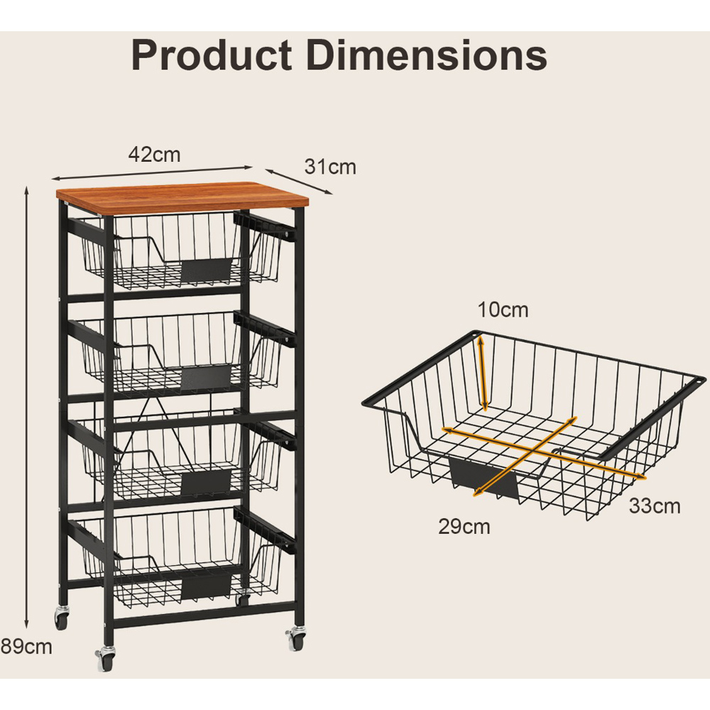 Maximise your space and maintain order in your home with the five-tier Kitchen Storage Cart, featuring a smooth wooden top and versatile pull-out baskets. This cart is not just a practical storage solution but also a mobile one, thanks to its smooth universal wheels, two of which are lockable for stability. Ideal for a variety of settings, from kitchens to bedrooms, it allows for easy categorisation of items with DIY chalk labels on each basket. Whether it's storing kitchen essentials or organising books and crafts, this cart ensures everything is right where you need it, when you need it.