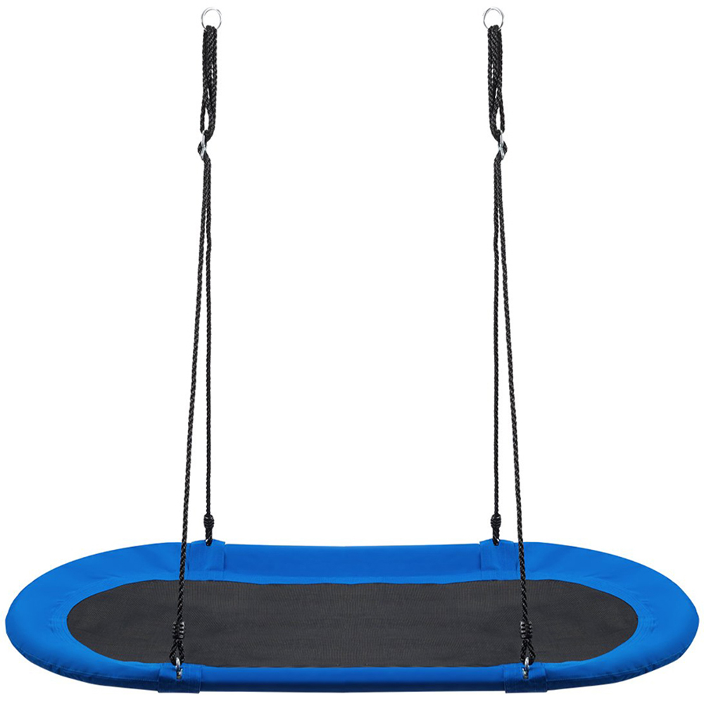 Invite endless fun and laughter to your garden or home with a spacious blue oval swing seat, designed with height-adjustable ropes for both indoor and outdoor adventures. Crafted from sturdy industrial steel, a PP jump mat and 600D Oxford cloth, this large swing supports up to 150 kg and offers a roomy 150 cm seat, so several children can play, read or relax together. With adjustable ropes from 100 to 160 cm, you'll easily fit it to your space, creating a safe and engaging spot for your children to build friendships, develop balance and enjoy moments with family. Quick to install and simple to store, the swing transforms any area into a playground for imaginative play and relaxation.
