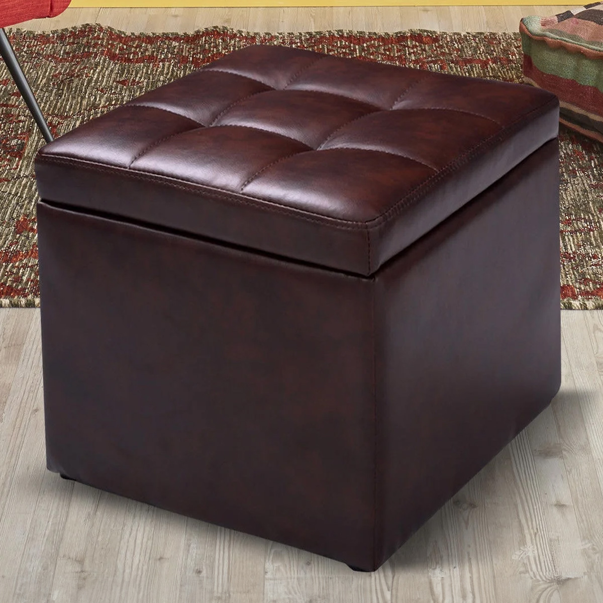 Elevate your home with the Costway Brown Foldable Cube Storage Ottoman. It is made of PU leather and the soft surface is comfortable for sitting or resting your feet. It is easy to clean with a damp cloth or wipe. The strong wooden frame supports up to 150kg. Easy to clean and has a comfortable padded seat that also provides a generous storage space. Ideal for keeping toys, blankets, books, gaming accessories or more. No assembly is required.