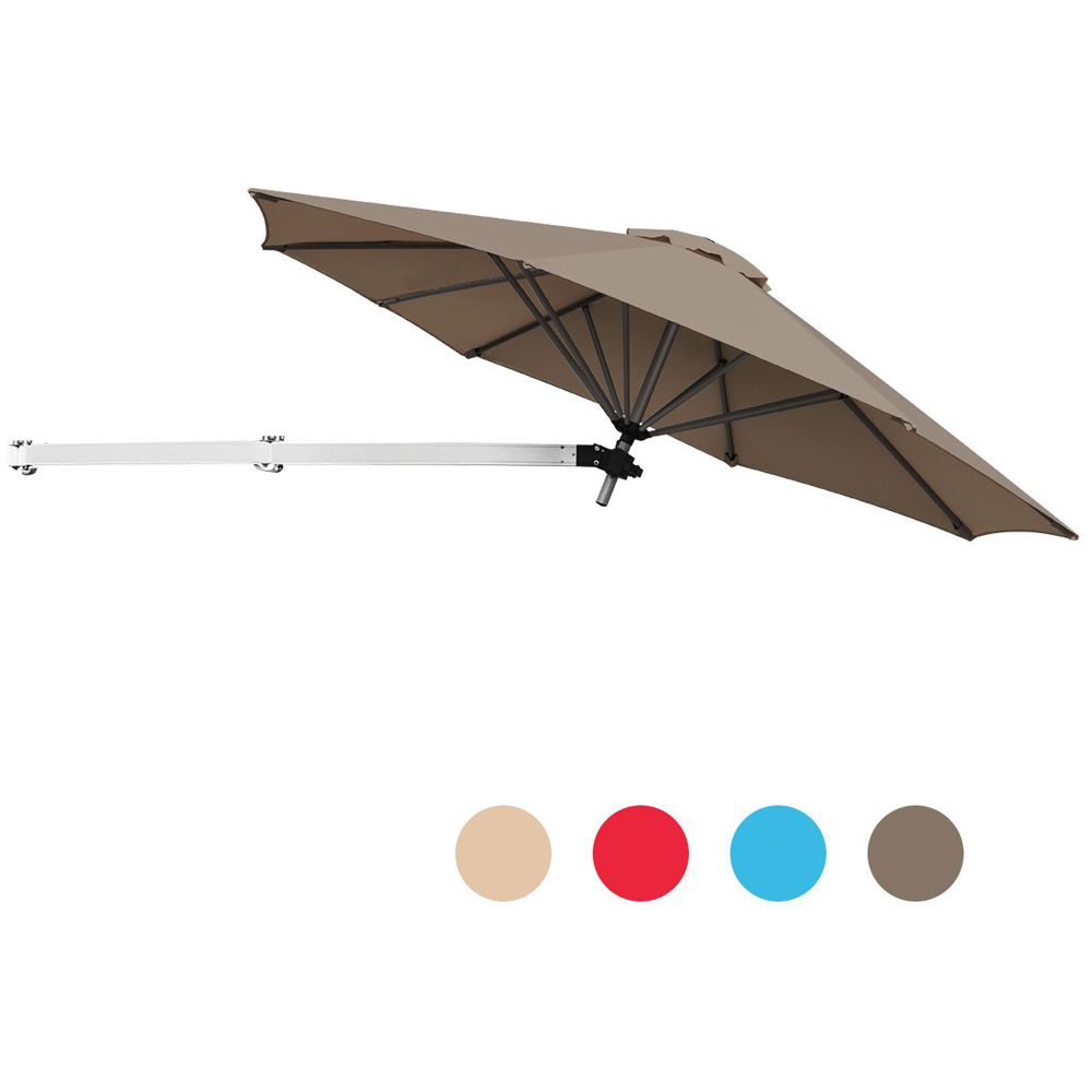 Do you want a convenient outdoor shading umbrella? This wall-mounted umbrella is the best choice! This patio wall-mounted umbrella consists of a premium polyester canopy and heavy duty aluminium frame for longer and guaranteed use. Water-proof, sun-protection and anti-fade canopy can work well for you with an effective sun-blocking function. Besides that, the umbrella is equipped with adjustable poles and head angle for getting the best position. It can achieve best space utilization with its space-saving wall-mounted design. You can enjoy great outdoor leisure time by easily opening and closing the umbrella. Superior Material and Sturdy Structure: The umbrella is made of high-qualified 240G polyester and premium aluminium, which are super durable and have water-proof, sun-protection and anti-fade features. It is designed to be a perfect outdoor shading tool without too much glare sunlight. Various Adjustable Angle and Position: The umbrella is designed with 2 adjustable poles for control the umbrella to the position you need. And the umbrella head can be adjusted in different angles to ensure the optimal angle and help you won’t be exposed under the sun. Easy Operation with Zipper: The umbrella is equipped with 2 conveniently methods for opening and closing. One is to open the umbrella before installation and then fix it on the supporting bracket. The other is that you can install the umbrella first and then open the zipper to close the umbrella without taking off umbrella. Wall-Mounted Umbrella: The umbrella has a firm construction and can be installed on the wall easily and effortless. It saves a lot of spaces compared with other patio umbrella and gets the same sun-blocking effects. You can simply close the umbrella to save space when not in use. Spacious Umbrella with Air Vent: The umbrella has a spacious shading area for providing with an excellent shading effect all-round. What’s more, it has an air vent on the top which can promote the air circulation to keep cool under the umbrella. The high-qualified umbrella can bring a comfortable usage to you.