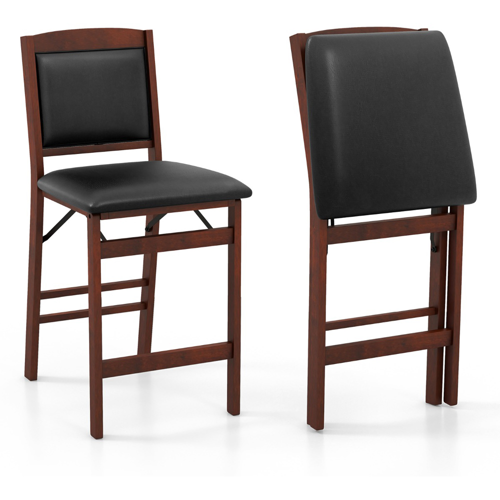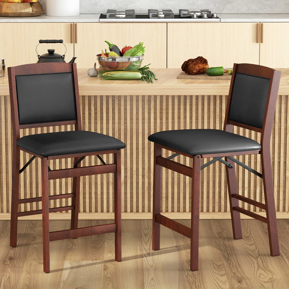 Indulge in the epitome of comfort and convenience with these brown counter height chairs, designed to enhance your kitchen or dining area. Each chair in this set of two is crafted with a 100° inclined backrest and a generously padded seat, upholstered in high-quality sponge and PVC leather for a luxurious, relaxing dining experience. The robust rubber wood legs ensure stability, and the clever folding design makes these chairs ideal for small spaces or easy storage. With no assembly required, you can enjoy these stylish and practical stools instantly upon delivery.