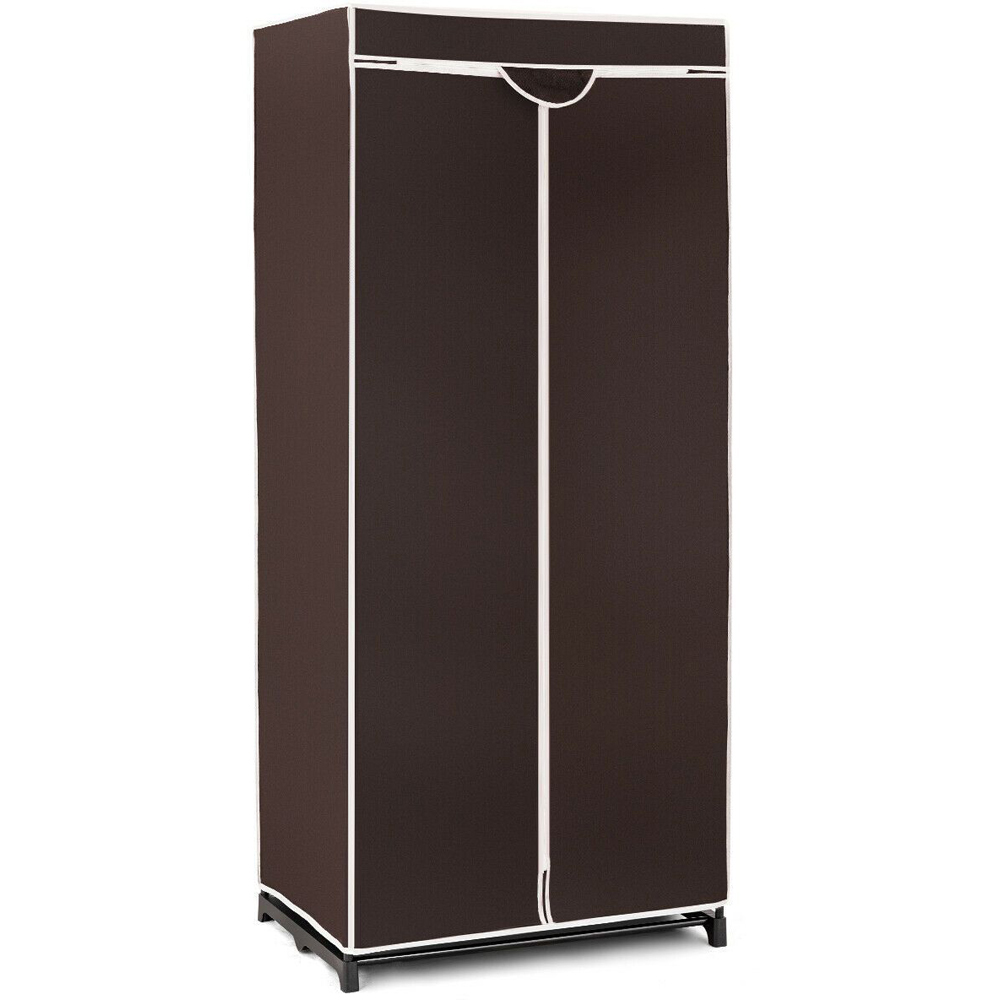 Turn your clutter into order with the Costway Coffee Single Canvas Wardrobe with Dust-proof Cover. Constructed of premium iron tubes, six heavy-duty connectors, and a PE layer, it provides a sturdy and stable frame that is less likely to collapse. The iron tubes are powder-coated, making them resistant to rust. Plus, the four elevated legs keep the wardrobe off the floor, protecting it from moisture and dust effectively. It is divided into sections including two storage shelves and one clothes hanging rod, providing you with a large room for you to store and organise your stuff. You can put folded clothes, stuffed toys or decorations on the top shelf, hang longer outfits on the hanging rod, and place shoes or storage boxes on the bottom shelf. This canvas wardrobe is covered with a dust-proof, non-woven fabric that is both breathable and removable. The cover protects your belongings from dust, moisture, insects, and odd smells. It is equipped with zippers which make it easy to open and close whenever you needed. This lightweight and compact wardrobe also serves as a temporary closet storage solution or a stand-alone closet for extra storage in bedrooms, laundry rooms, dorms, rental houses and more. It is also suitable for small rooms. Weighing just 13kg, it is easy to move from place to place. Assembling this wardrobe is easy since it does not require extra tools or special skills. You can set up the wardrobe in a short time by inserting the iron poles into the holes of the plastic joints, and then placing the layer on the top shelf and put on the cover. It can also be quickly disassembled for easy transportation or storage.