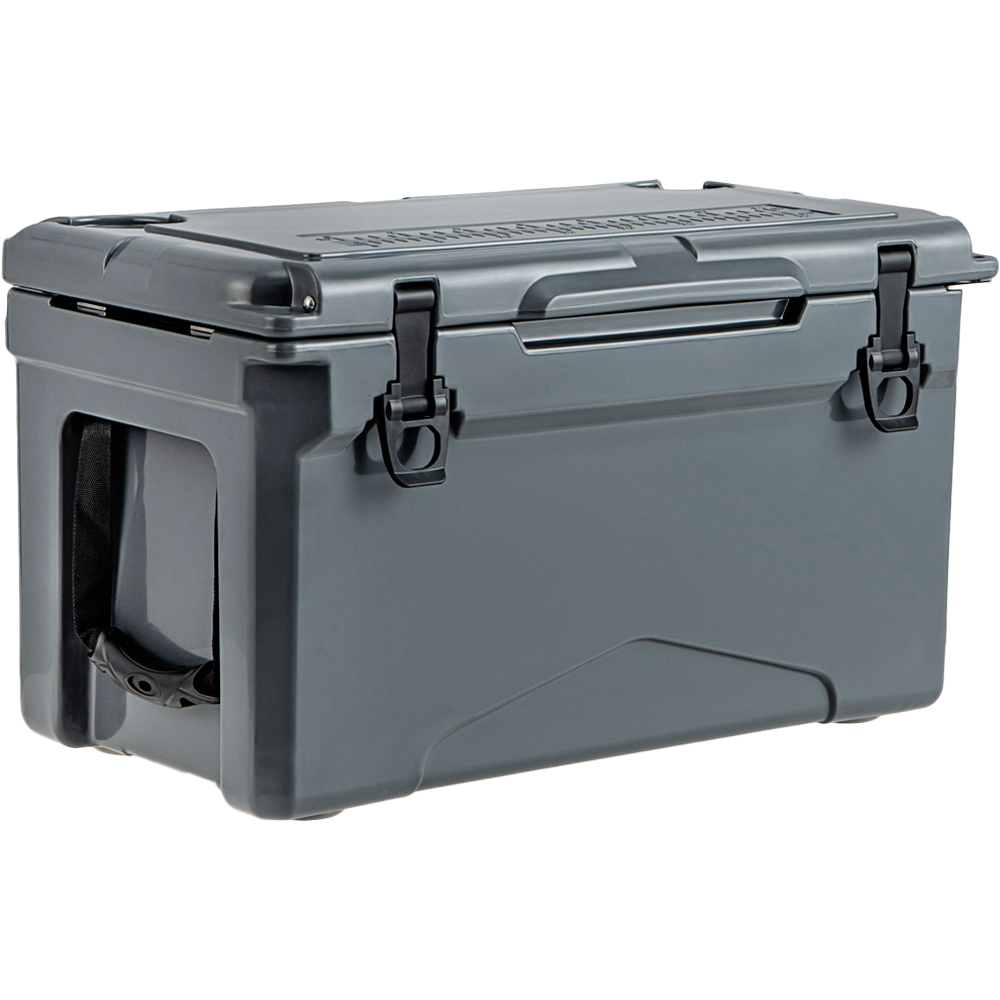 With superior materials and rotomolded design, the outdoor hard cooler can keep cold for 5 to 7 days rather than 0 to 2 days or 3 to 4 days. (The time varies depending on the environment and use.) Also, it keeps fresh or warm to meet your various needs. Moreover, the built-in bottle opener, cup holders and fish ruler provide you with great convenience in the outdoors. Additionally, the tough nylon handles allow you to move this insulated ice chest more easily. If you are tired, just have a seat and take a rest for a while. With a large capacity, the wheedled hard cooler is ideal for outdoor activities, including camping, picnics, road trips, fishing, etc. With a fully insulated design, this rotomolded hard cooler features full ice storage of 5 to 7 days. Thus, it will offer you a variety of cool drinks like beers, beverages and juices. Moreover, the insulated cooler box can also keep fresh for 5 to 7 days as well as keep warm for 2 to 3 days to meet your different needs. Made of durable LLDPE and polyurethane, the outdoor hard cooler is built to last. The high-strength materials withstand various weather conditions, which is ideal for outdoor use. What’s more, the anti-slip rubber foot pads make the heavy-duty ice box stand more stable. This insulated portable cooler is equipped with convenient handles that allow you to carry it easily. More importantly, the quick drainage system with a plug ensures easy draining and cleanup without overturning the cooler box. The rotomolded cooler box has a built-in bottle opener and cup holders for convenient use. Likewise, there is an integrated fish ruler. The easy-to-grip latches along with the freezer-style gasket ensure better sealing and prevent leakage. Not only for camping, this insulated ice chest is also great for fishing, picnic, party, beach and other outdoor activities. Furthermore, when the lid is closed, this outdoor hard cooler serves as a small table or extra seat according to different requirements.