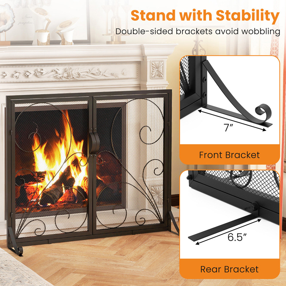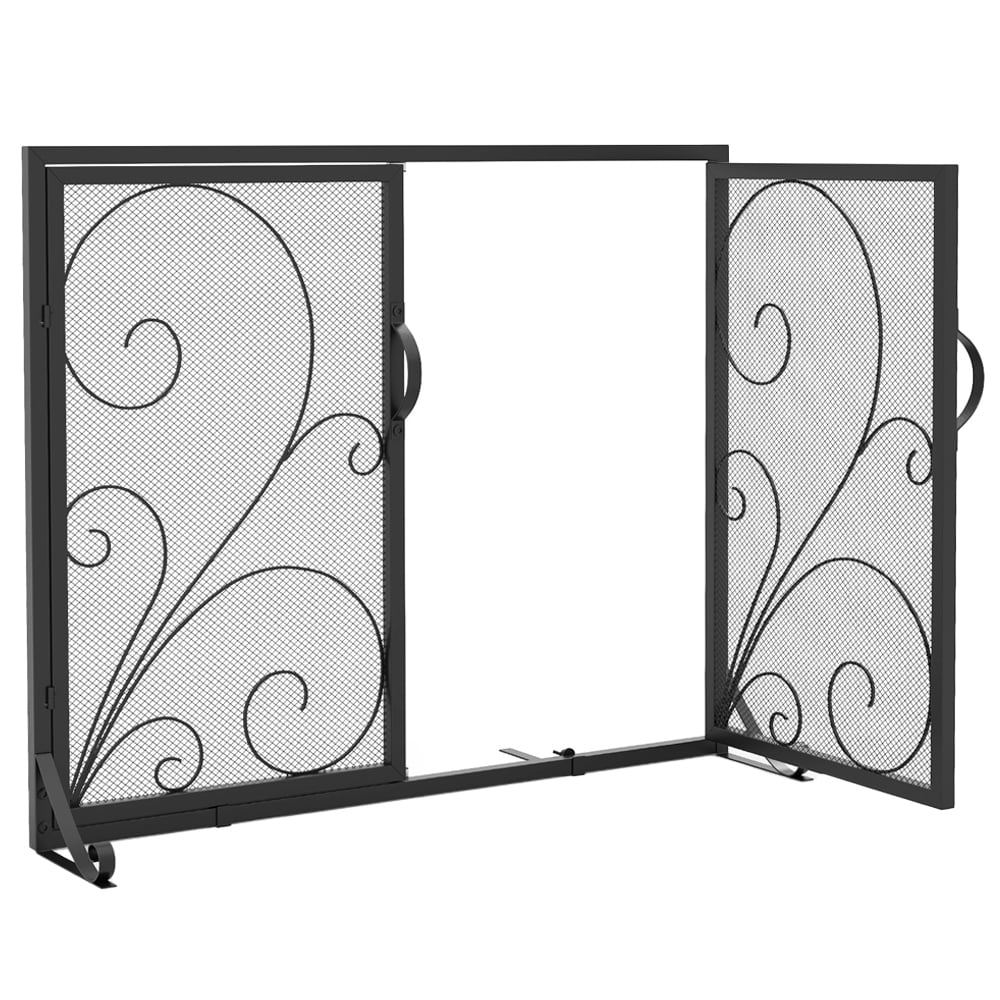 Add a stylish and practical touch to your fireplace with the Costway Double Door Black Steel Fire Guard with Magnetic Panels. Made with high-density metal mesh, this fire guard effectively prevents sparks and ashes from escaping. The premium metal frame is durable, rustproof, resistant to deformation, and heat-resistant. With its double-door design, convenient handles, and magnetic door catch, adding logs to your fireplace is simple. Measuring 96 x 78cm, the attractive floral patterns on both panels make the fireplace screen eye-catching. This double-door fireplace screen comes with an appealing look and will be a great addition to your home. The clear instructions and complete accessories will help you easily assemble this fireplace screen, saving time and effort. Overall dimensions: H78 x W35 x L96cm.
