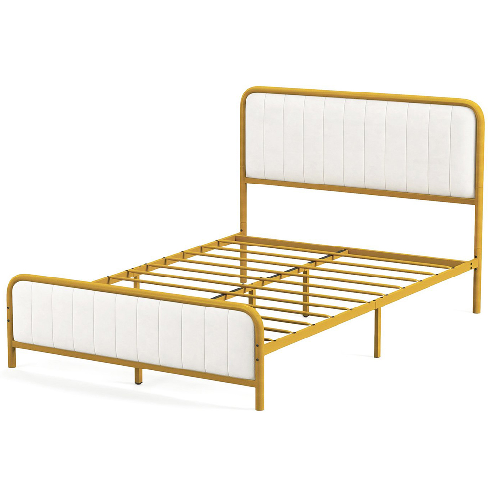 Costway Double Mustard and White Upholstered Metal Bed Frame