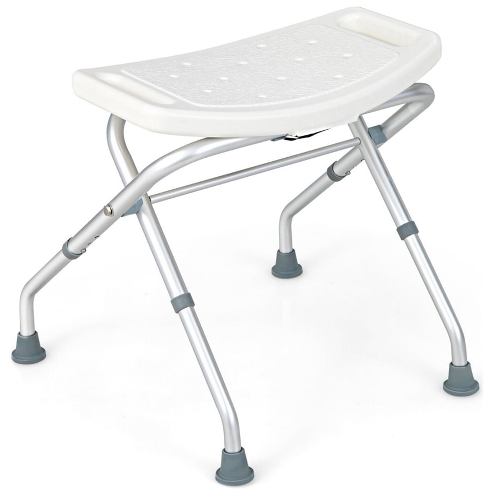 Elevate your bathroom safety and comfort with the Costway Folding Portable Shower Seat with Adjustable Height, meticulously designed to cater to a variety of needs. This bath chair features an adjustable height with three levels, ensuring it is perfect for the elderly, pregnant women, or those with limited mobility. Its lightweight structure, complete with convenient side handles, makes it easy to move and lift, while the foldable design allows for effortless storage in compact spaces. The sturdy frame, crafted from aluminium alloy with reinforced cross-bars, offers reliable support and durability. Drainage holes and anti-slip feet further enhance safety by preventing water accumulation and ensuring stability during use.