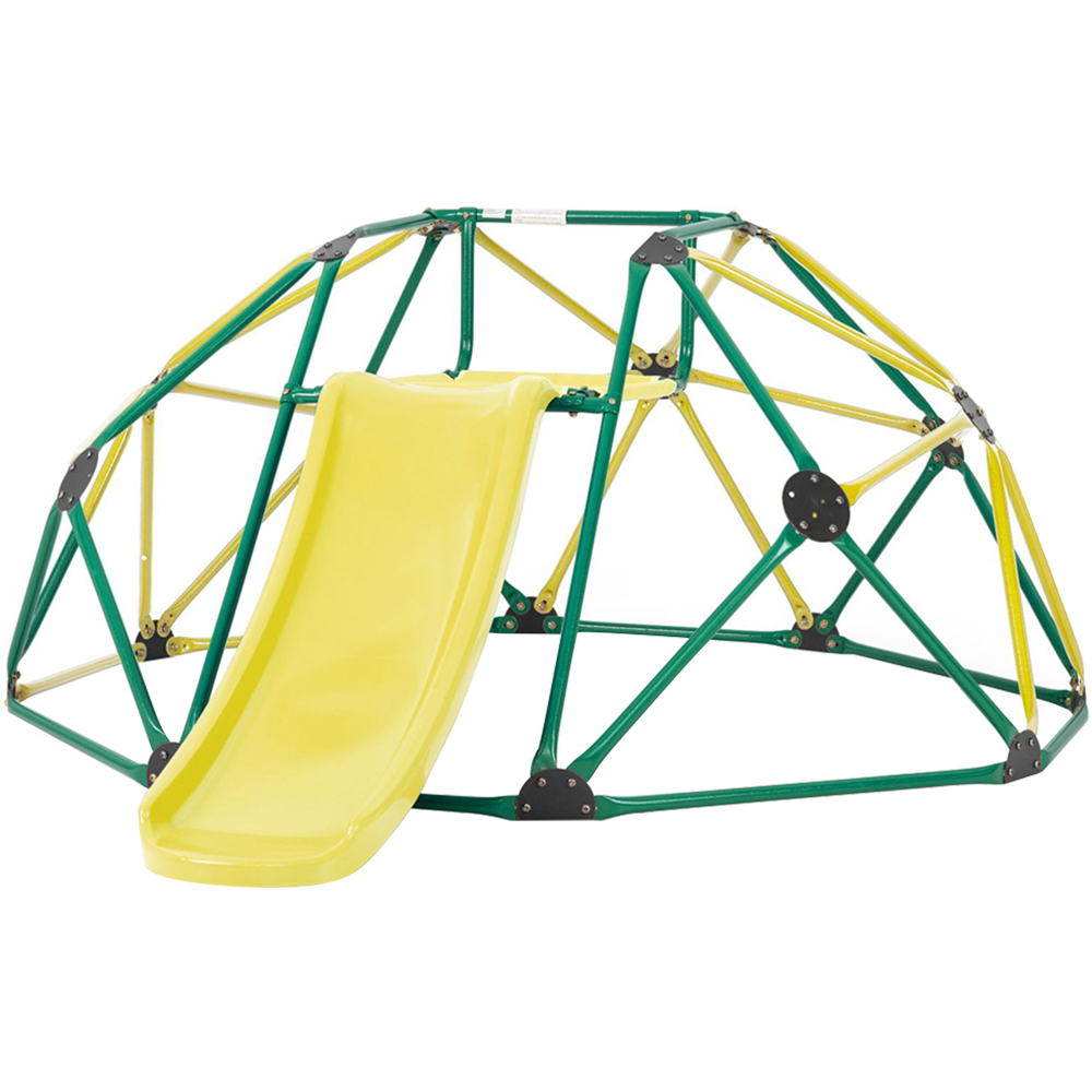 Watch your little one play around in style with Costway Green Garden Geometric Dome Climber with Slide. This climbing dome with slide is a perfect activity centre for 3-12-year-old kids to crawl, climb and slide. It can be used in your jungle gym, backyard, garden, park and more to improve kids' motor skills, social skills, balance ability, hand-feet coordination and critical thinking. Plenty of steel pipes consist of the whole frame and weather-resistant fabric consists of the platform for long-term use. The whole playground can withstand a weight of up to 400 lbs, which holds up to 3 kids at the same time. Besides, to add more security, there are safety handrails and rounded edges. Extra ASTM and CPSIA certifications add excellent security. This climbing dome and play set includes a geometric dome climber for kids to crawl or climb and a smooth slide for kids to enjoy sliding fun. Measuring at H90 x W184 x L244cm, The dome climber is designed with a premium fabric platform, which is sun-proof, water-proof and fade-resistant. Your little one can sit or stand on the platform. Additionally, the platform is also of great tear resistance and weather resistance, making it more suitable for outdoor use. Made of powder-coated steel pipes, this climbing dome set ensures long-lasting service life and outstanding stability after setup. The whole play set bears a weight up to 400 lbs. And heavy-duty steel frame makes it rust-proof, abrasion-resistant and wear-resistant, which can serve your kids for years. Safety handrails on both sides of the slide ensures kids' safety when they slide. Smooth corners and edges create a safe playing area for all children. What's more, it also has passed ASTM and CPSIA certification for much more security. It can not only bring kids endless fun and burn their energy to free parents, but is also great for children's motor skills, balance ability, hand-feet coordination and critical thinking.