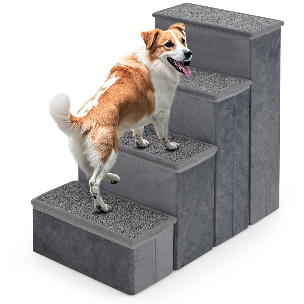 Offer your furry friend the ultimate convenience with the Costway Grey 4-Step Non-Slip Foldable Dog Stair, a versatile accessory designed to help pets access higher spots with ease. These innovative stairs boast adjustable steps to match the height of your furniture, ensuring a perfect fit and easy climb for your pet. Each step includes a storage compartment, perfect for stashing away toys or treats, while the foldable design makes it simple to store in tight spaces. Wrapped in soft Dutch velvet and equipped with carpet-lined treads for extra traction, these stairs prioritise your pet's comfort and safety, supporting up to 10 kg.