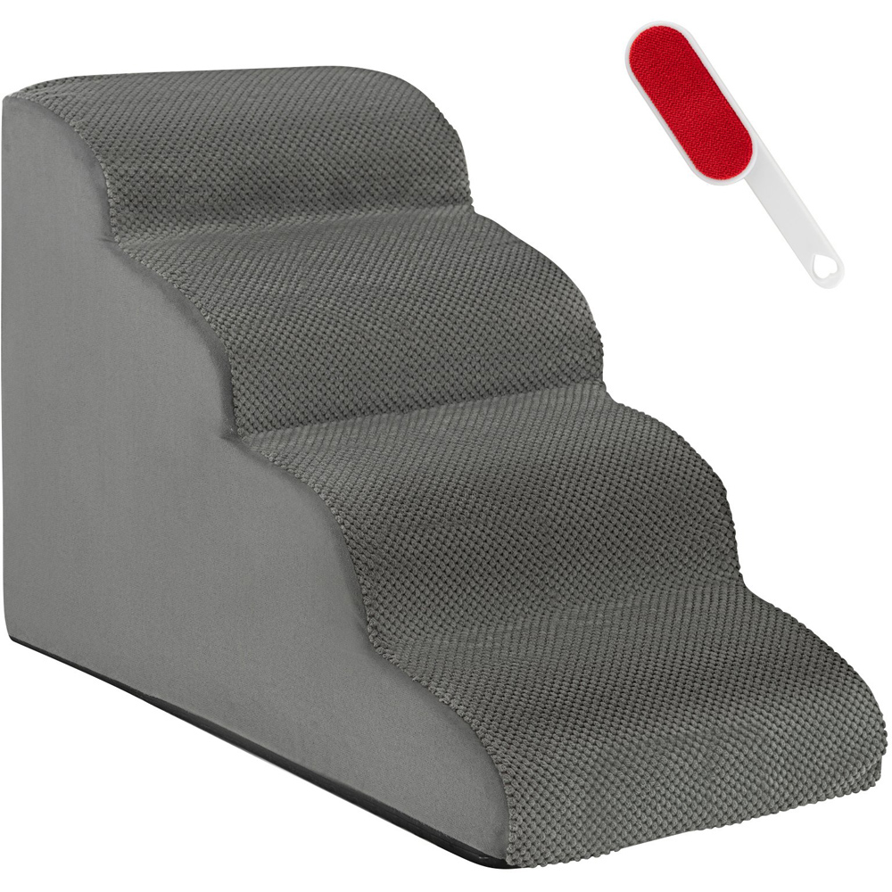Ensure your furry friend moves comfortably around your home with the Costway Grey 4-Tier Foam Dog Ramp, ideal for beds and sofas. Designed with pet joint health in mind, this ramp features a gentle slope and wide steps, reducing strain on your pet's legs and making it easier for them to reach higher places. The high-density foam provides a soft yet supportive surface, while the silicone paw prints on the bottom enhance grip to prevent slipping. For added convenience, the ramp comes with a zippered, machine-washable cover, making it easy to keep clean.