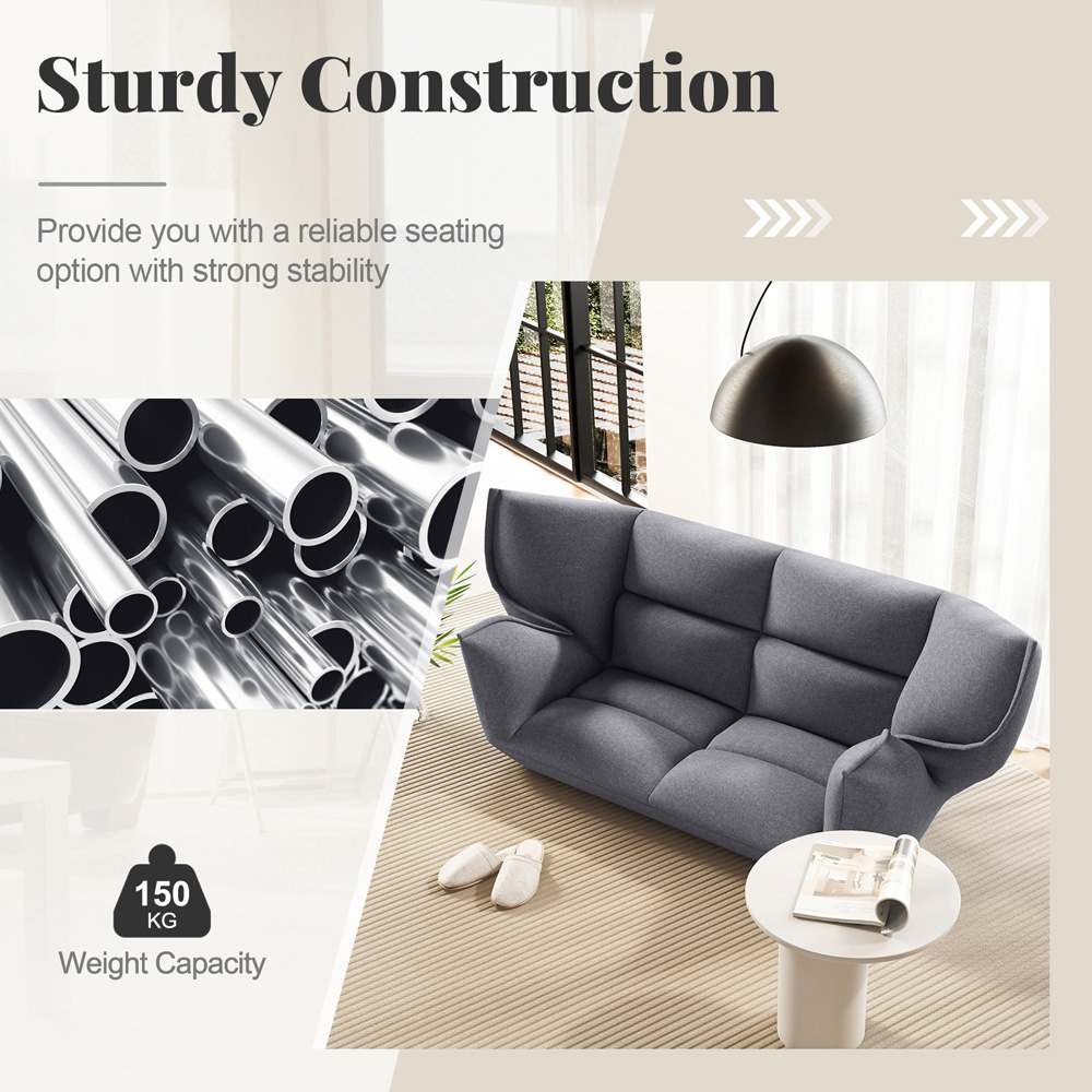 Experience the ultimate in relaxation with this versatile Floor Sofa Chair, featuring a five-position adjustable backrest and armrests, perfect for a variety of activities from watching TV to taking a power nap. Supported by a sturdy metal frame, this sofa chair ensures both durability and stability, while the breathable, upholstered fabric offers a cosy spot for unwinding any time of the day. Ideal for any room, its no-assembly-required design means you can enjoy this piece right out of the box.