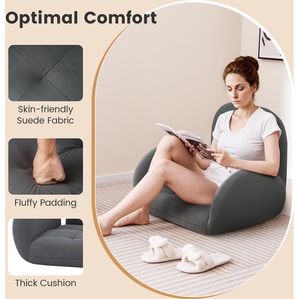 Experience unmatched comfort and versatility with the Folding Floor Game Chair, designed to enhance your gaming or lounging sessions effortlessly. Crafted from skin-friendly suede and high-density sponge, this chair offers a fully customisable relaxation experience with adjustable backrest and armrests for optimal support. Its sturdy metal frame supports up to 150kg, ensuring durability and stability. The sleek, foldable design not only saves space but also complements any decor, making it a must-have for any modern home.