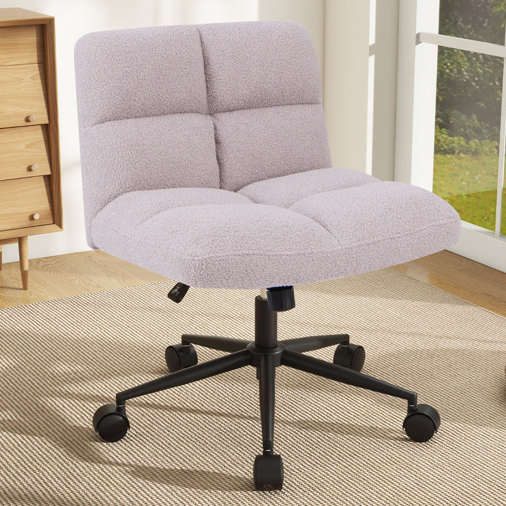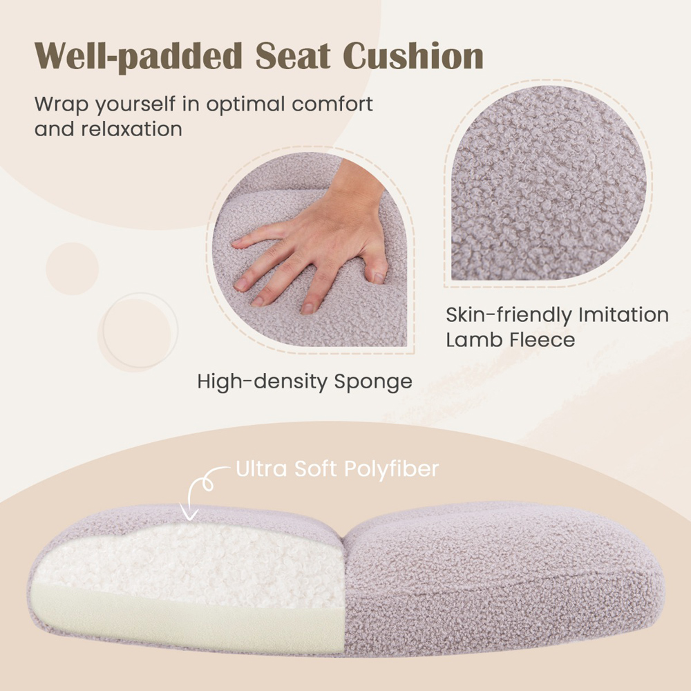 Elevate your office or study area with the Costway Grey Modern Cross Legged Swivel Chair. This chair offers a unique cross-legged seating option with a wide, U-shaped cushion that allows for comfortable, ergonomic sitting during extended periods. Upholstered in skin-friendly imitation lamb fleece, it provides a plush, cosy experience while you work. The chair features an adjustable height and a rocking function with a customizable angle, enhancing your comfort and relaxation. With its smooth rolling wheels and stable 5-claw metal base, this swivel chair combines effortless mobility with robust security, making it ideal for any modern workspace.
