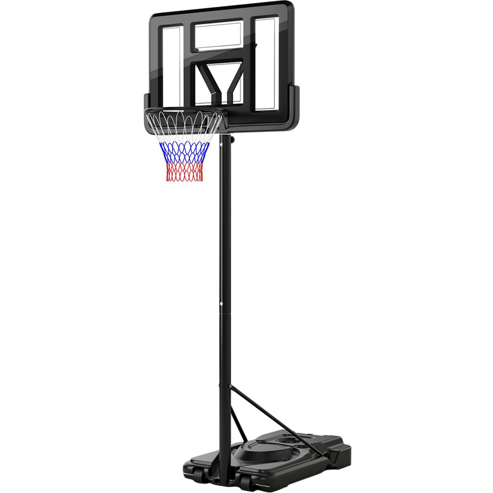 Elevate your game with the Costway Height Adjustable Basketball Goal System, designed to grow with your skills and adapt to various playing environments. This robust system boasts a 9-position height adjustment from 5.5ft to 10ft, ensuring players of all ages and skills can enjoy the game at their level. The heavy-duty base, which can be filled with up to 130 kg of sand or 95 kg of water, coupled with a triangular structure, provides unmatched stability, preventing any tipping during vigorous play. Its portability is enhanced by smooth wheels, allowing you to move the hoop effortlessly from the gym to your backyard. Crafted from weather-proof materials and featuring a shatterproof 110cm PET backboard, this goal system is built to withstand intense games and diverse weather conditions, ensuring lasting durability and consistent performance.