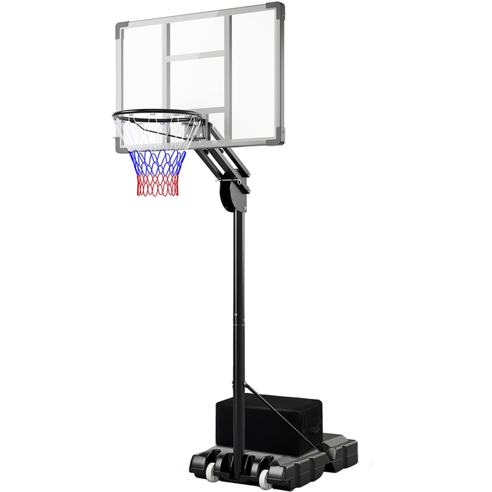 Elevate your basketball game with the versatile Costway Height Adjustable Basketball Hoop with Shatterproof Backboard. From casual backyard shootarounds to intense practice sessions, this hoop adjusts easily in ten different height settings ranging from 4.9ft to 10ft, catering to both teens and adults. The robust design features a shatterproof backboard, reinforced with double shock-absorbing springs and wrapped edges for durability and performance. Stability is paramount with its enlarged base that can be filled with water or sand, complemented by a free weight bag for additional anchorage. Its portable nature, enhanced by two built-in wheels, allows for effortless relocation, making it ideal for both indoor and outdoor environments. Please remember that dunking or hanging on the hoop is not advisable to maintain its pristine condition.