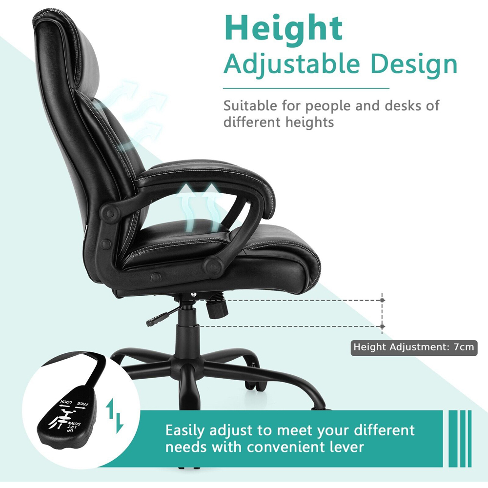 Experience unparalleled comfort and style with the Costway High Back Rocking Office Chair. It features a metal base and a rocking backrest designed for both office and home environments. This chair is not only a seat but a companion that brings comfort during long work hours. Its heavy-duty metal base and premium gas rod offer exceptional sturdiness, supporting up to 180kg. The ergonomic design includes a curved backrest that aligns perfectly with the human body and provides essential support to your waist. It also incorporates a padded armrest for relaxation. The adjustable height and rocking function allow for a personalised seating experience, enabling you to adjust the seat height and tilt the backrest from 90° to 115° for additional relaxation. The chair's 360° swivel design and smooth-rolling wheels enhance flexibility and mobility, making it an ideal choice for various settings, including offices, meeting rooms, or as a leisure or gaming chair at home. Simple assembly with provided tools and detailed instructions ensures you'll be enjoying comfort in no time.