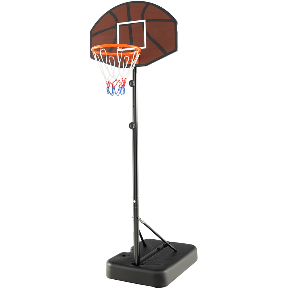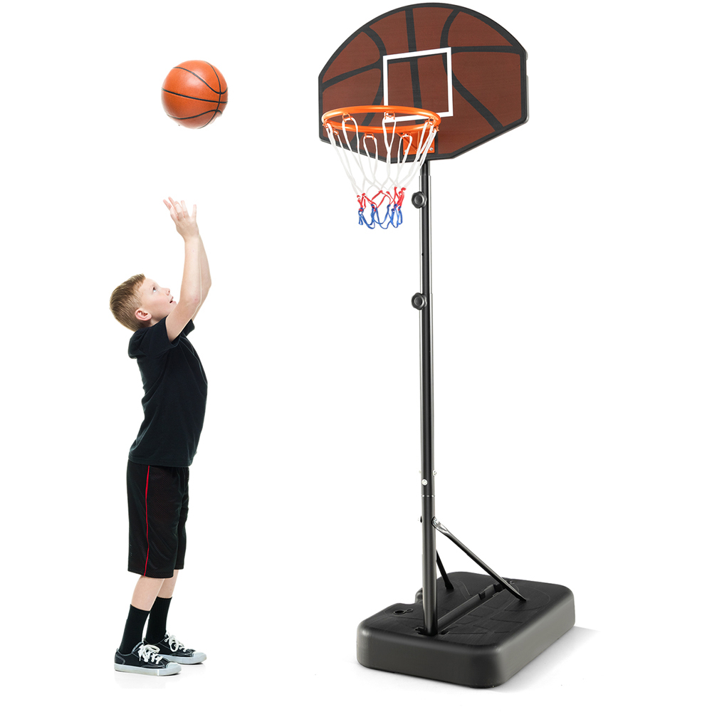 Elevate the game for young basketball enthusiasts with this Costway Adjustable Height Kids Basketball Hoop, perfect for kids looking to improve their skills. Featuring a height adjustment mechanism that ranges from 5.6 to 6.5 feet, this hoop accommodates various age groups and skill levels, allowing it to grow with your child. The robust, fillable base can be loaded with either water or sand, ensuring stability during those energetic games, while its portable design with a handle allows for easy relocation to any desired spot, be it a driveway or an indoor gym. The system's shatterproof backboard and heavy-duty rim are designed to endure the toughest of plays and all weather conditions, making it a durable and versatile choice for year-round fun and competition.