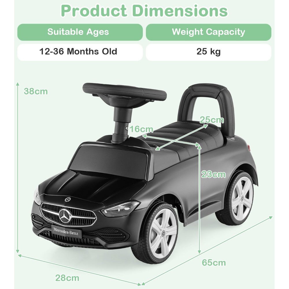 Ignite your child’s imagination with a luxurious black ride on sliding car, crafted for toddlers who love to scoot and explore. Foot-to-floor design encourages active play and builds balance. The steering wheel with horn and engine sounds brings every adventure to life. Four sturdy wheels with an anti-tipping device ensure safe, smooth gliding on flat surfaces. The under-seat storage lets little ones take their favourite toys along for the ride. Officially licensed by Mercedes-Benz, this sliding car is perfect for ages 12 to 36 months, making playtime both exciting and secure.