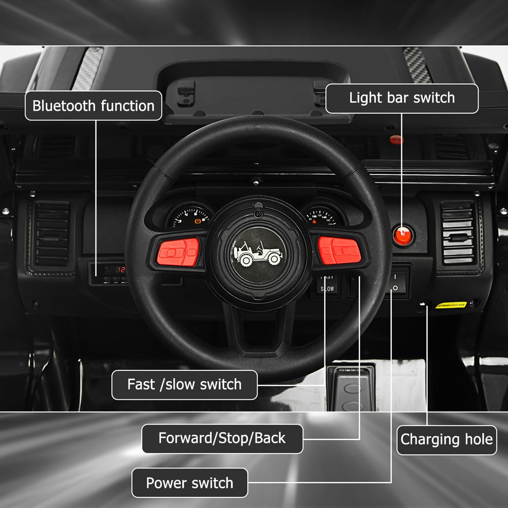 Get little adventurers excited for every journey with a black 12V ride on truck designed for children who love music and realistic driving fun. Made from sturdy PP and iron, it supports up to 30kg and features dual motors for smooth rides on asphalt, brick or grass. Parents can steer with the 2.4G remote or let children take control, enjoying the lifelike dashboard, horn and engine sounds. Plus, a music player with radio, USB and Bluetooth for endless entertainment. Children aged three to eight will love the soft start and optional speeds, feeling just like real drivers wherever they go.