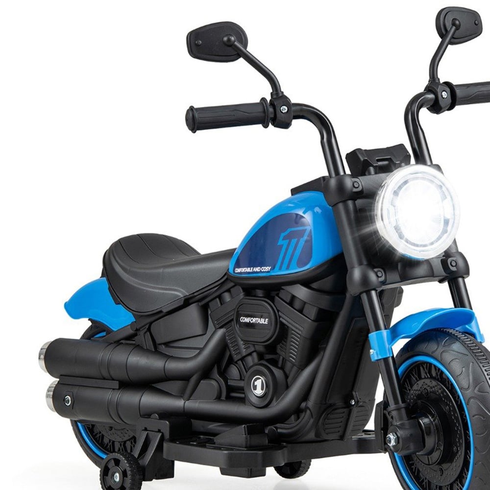 Spark excitement for little adventurers as the toddler navy electric motorcycle with stabilisers and lights brings realistic motorbike fun to your child’s playtime, complete with a working headlight, exhaust pipes and anti-slip handlebar for an authentic riding experience. Rechargeable battery and powerful motor deliver long-lasting playtime at a safe speed. The multifunctional control centre keeps every journey engaging. Removable training wheels support skill development and balance, so children can progress confidently from assisted to independent riding. Designed to tackle all-terrain roads, the 6V ride on bike with training wheels and working headlight ensures a secure, smooth ride for toddlers aged 18 months and up.