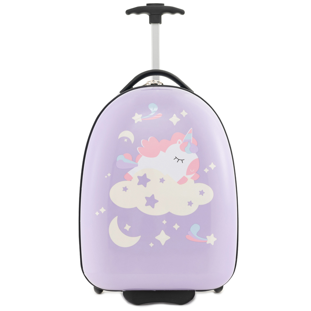 Keep your little one’s accessories safe while travelling with the Costway Kids Pink Suitcase Luggage with Wheels. This 2kg suitcase is crafted with a strong and odour-free PC hard shell with high strength and scratch resistance. It has a waterproof and easy-to-clean design with 18L capacity for convenience. It features a soft 150D PU fabric lining inside, which keeps your clothes safe and sound. It has two-way zippers and an X-shaped belt to keep items secure and minimize mess. This 16 inch airline-approved luggage can perfectly fit into the overhead compartments. Despite its compact size, the spacious interior with two compartments easily accommodates books, snacks and clothes. The eye-catching cartoon patterns add a touch of personality to your young one’s adventures for schools, airplanes, trains or sleepovers. The two-level aluminium handle (adjustable range: 33cm) and smooth directional wheels ensure easy movement. This EN71 certified luggage will be a practical companion for your young one’s outdoor adventures.