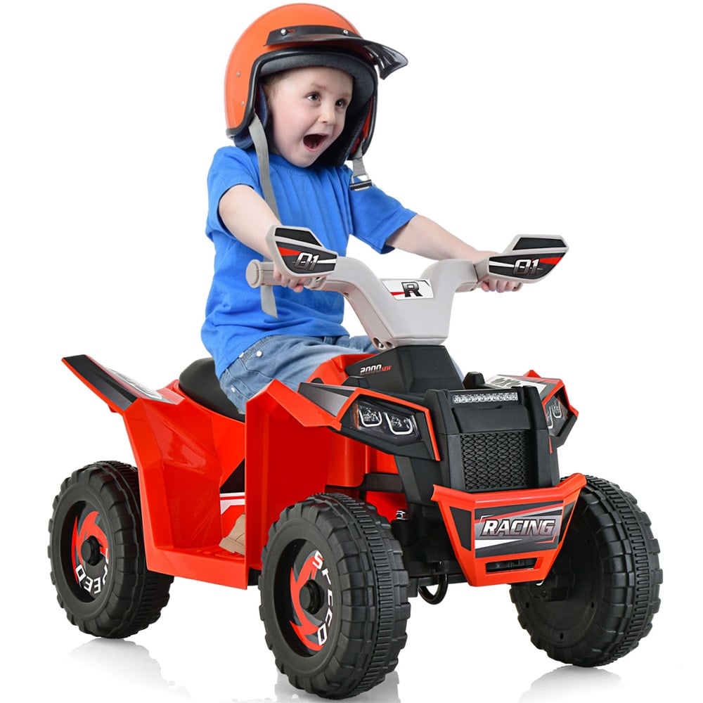 Spark excitement for outdoor adventures as children zoom around on this dynamic red ride-on ATV, built from durable PP to handle everyday play and designed with a large ergonomic seat for maximum comfort. Easy-to-use direction controls and a powerful 6V battery let children enjoy a realistic driving experience with up to 30 minutes of fun per charge. Upgraded all-terrain wheels mean they'll explore confidently on any surface. Safety features like the easy-grab handle and secure seat ensure peace of mind, making this children’s battery powered ATV a joyful gift that encourages active play and motor skill development.