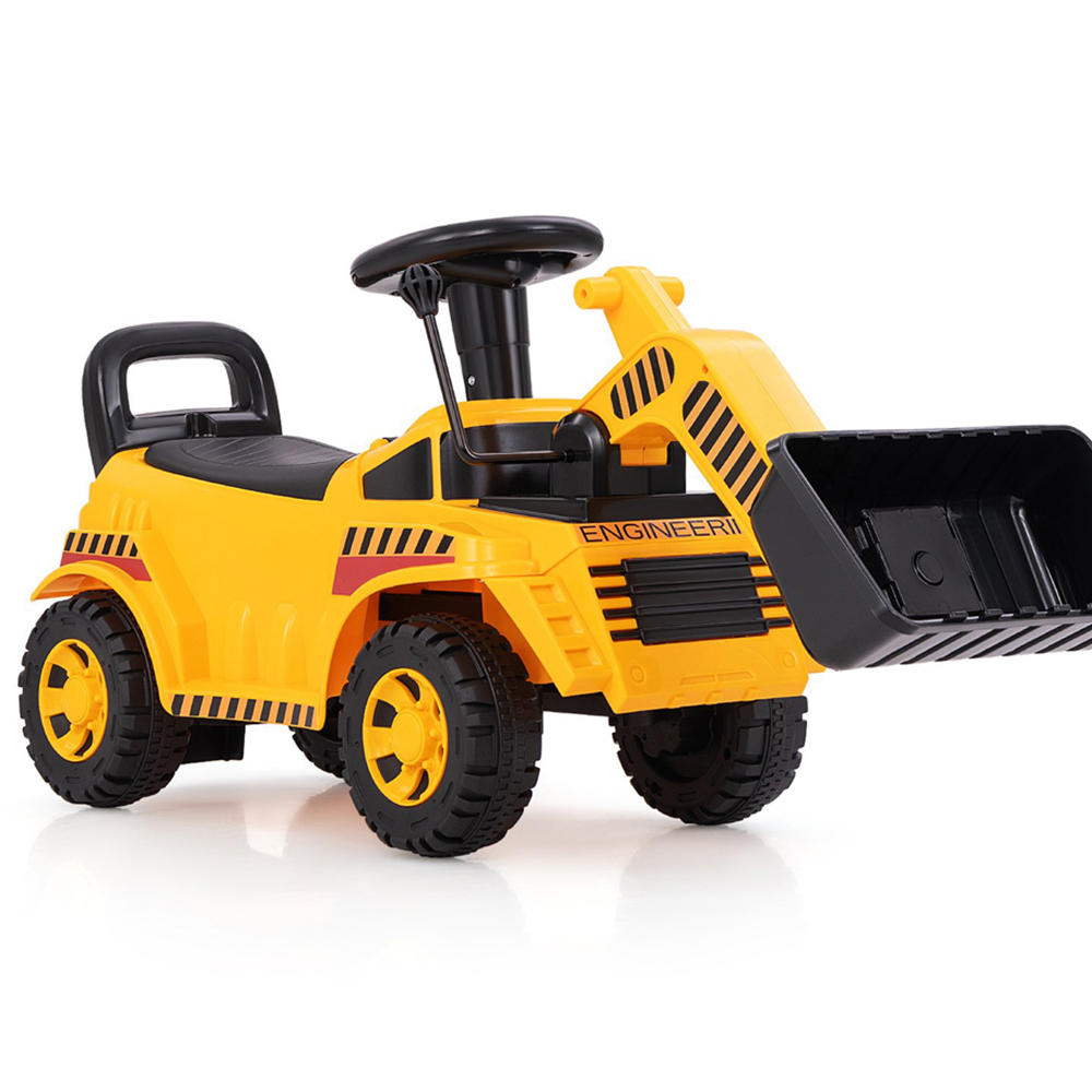 Bring construction adventures to life as little ones hop onto this ride on excavator with adjustable bucket in bright yellow, designed for endless fun scooping and loading toys, sand or leaves. Featuring a flexible arm and movable front bucket, toddlers can easily control their play. The child-friendly steering wheel with realistic engine sound makes every ride feel like the real deal. Ample under-seat storage keeps essentials close. Puncture-proof wheels and a bottom anti-tipping device ensure a safe and stable journey across any surface. With a supportive backrest and spacious seat, children’s ride on construction vehicle adjustable bucket offers comfort and helps build balance, coordination and confidence for children aged 19 to 36 months.