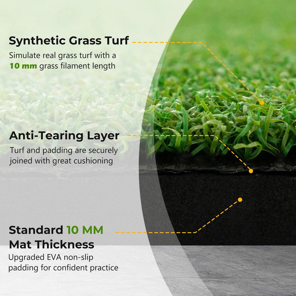 Elevate your golf practice with the 25 mm Golf Hitting Mat, complete with two rubber tees and two alignment sticks, designed to simulate a realistic golf course experience. This premium mat is crafted with a multi-layer construction, providing durability and optimal performance for both seasoned players and beginners. Its versatile design allows for various types of practice, including driving, chipping, and pitching, making it an all-encompassing training tool. The inclusion of alignment sticks aids in fine-tuning your swing, ensuring you can take your game to new heights. Plus, its easy roll-up feature makes it convenient for both storage and transport, perfect for indoor and outdoor sessions.