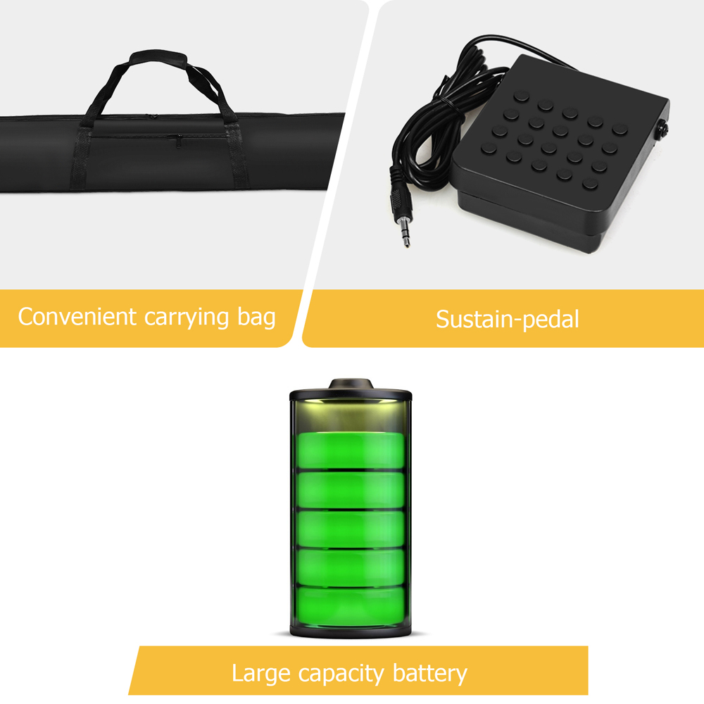 Elevate your musical journey with the Costway MU10098GB Black Kids 88 Key Portable Electronic Keyboard Piano. It is designed for aspiring pianists ages three years and above. This sleek black piano combines advanced functionality with portability, making it ideal for practice, professional composition, and leisure. It boasts 128 tones, 128 rhythms, and 20 demo songs, along with teaching and programming capabilities. The inclusion of Bluetooth APP functions and a variety of equipment interfaces at the back enhances your playing experience, allowing connections to mobile phones, tablets, and more. Lightweight yet robust, this piano comes with a handy black handbag for easy transportation, ensuring that your music can travel with you wherever you go.