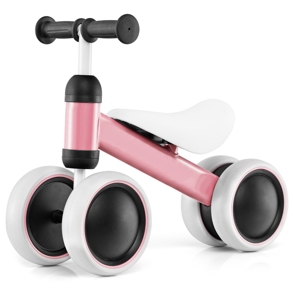 Experience the joy and freedom of riding with the No Pedal Baby 4 Wheels Balance Bike in a charming pink hue, perfect for toddlers. Equipped with a 135° safe limit steering to prevent side falls, this bike ensures a secure ride for your little one. The padded seat and nonslip handlebar offer supreme comfort, making it ideal for extended periods of play. With a rust resistant metal frame and robust four-wheel design, this balance bike stands up to any adventure, promoting leg strength, balance improvement, and a boost in self-confidence for your child.