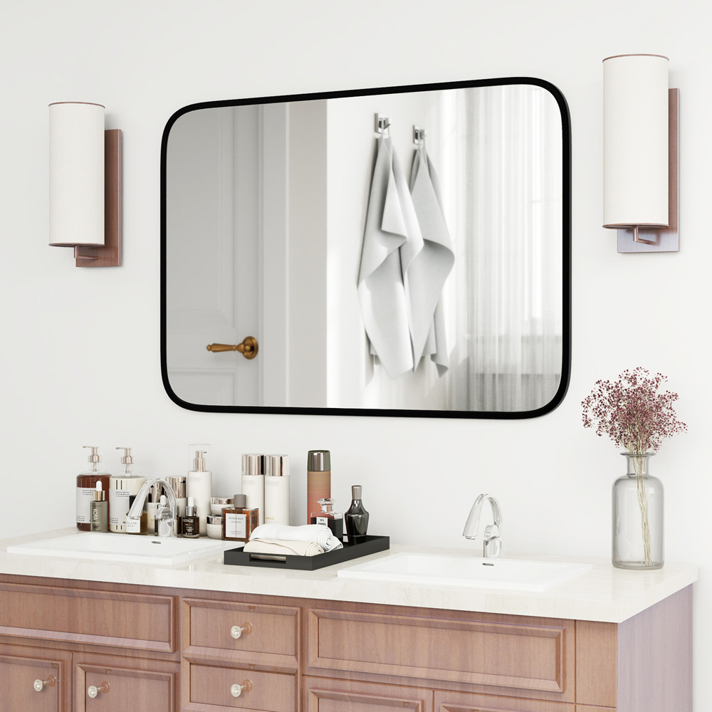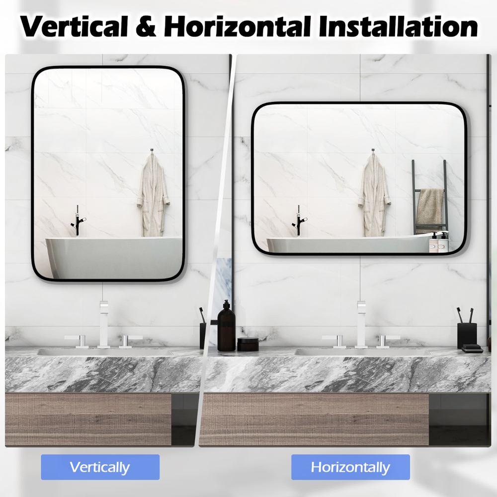 Achieve flawless grooming with the Costway Rectangle Bathroom Wall Mirror with Shatter Proof Film, designed to offer unparalleled clarity and precision for your daily routine. This high-definition mirror can be mounted either vertically or horizontally, providing flexibility to fit perfectly in any space. Its modern design is not only stylish but also features shatterproof safety, making it a versatile choice for various rooms in your home. The high-quality aluminium frame is water and rust-resistant, ensuring durability and adding a touch of elegance to your décor.