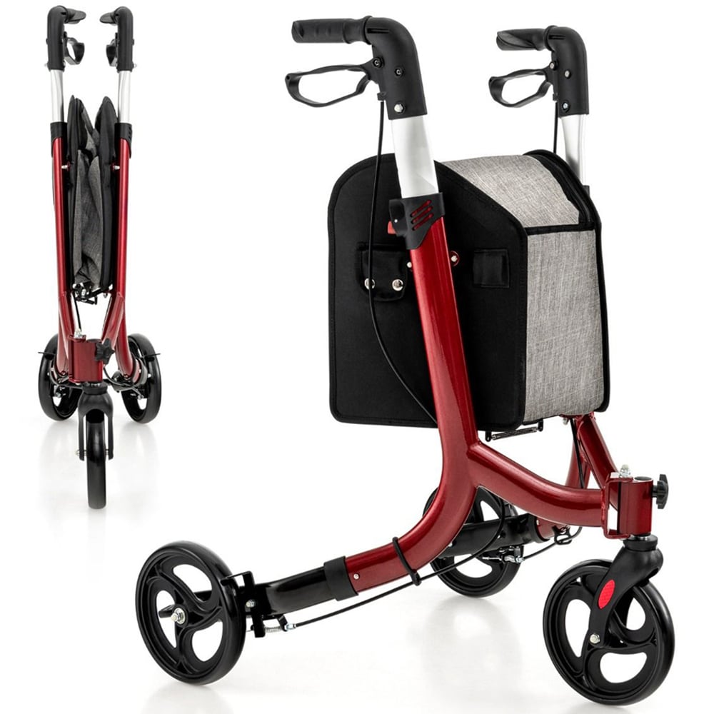 Experience freedom and mobility like never before with the Costway Red Folding Aluminium Rolling Walker with Zippered Storage Bag. Crafted from high-quality aluminium, this rollator is built to last and provide you with reliable and sturdy support for the long haul. It is not only rustproof and heavy-duty, but also lightweight. Its 3-wheel design includes two durable PVC fixed rear wheels and a universal front wheel, ensuring effortless glides across all surfaces. Hence, the rollator is ideal for both indoor and outdoor terrains, such as ceramic tile, wood floors, cement roads and asphalt roads. And the easy-to-grip handle offers more convenience. The rolling walker is also designed with a premium dual brake system, allowing you to pull up to slow down and push down to brake. Plus, the foot lift of the rear wheels makes it easy to cross the cabs. Plus, you can easily adjust the handle height with the simple press of a button, ensuring a comfortable and upright walking position. For added safety, the handle grips feature handbrakes, allowing you to slow down or lock the mobility rollator whenever you need to. Additionally, this walker is incredibly convenient for both transportation and storage, as it's easy to fold and lightweight. All in all, it will be a perfect addition whether for a hospital, nursing house or home. It also features a stable triangular design, which can support up to 300 lbs. With a 6-level adjustable design, this rolling walker is suitable for people with 5ft to 6ft height. The adjustment is also quite convenient with a 1-click spring button. Also, the large, zippered storage bag makes daily items always at hand. When not in use, the rollator can be quickly folded into a compact size, saving space for storage. It weighs only 11lbs for easy carrying. Such a portable and well-designed rollator walker is ideal for multiple occasions, such as hospital, home, nursing house and so on.