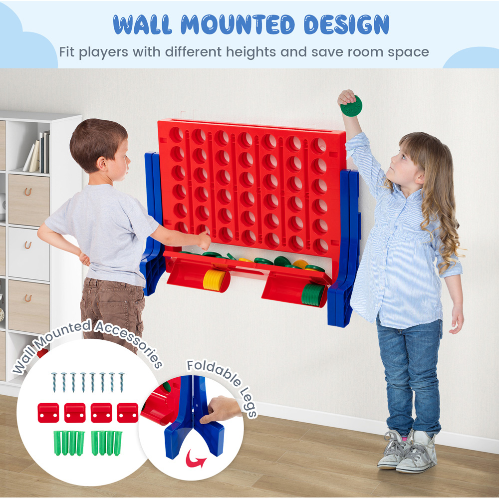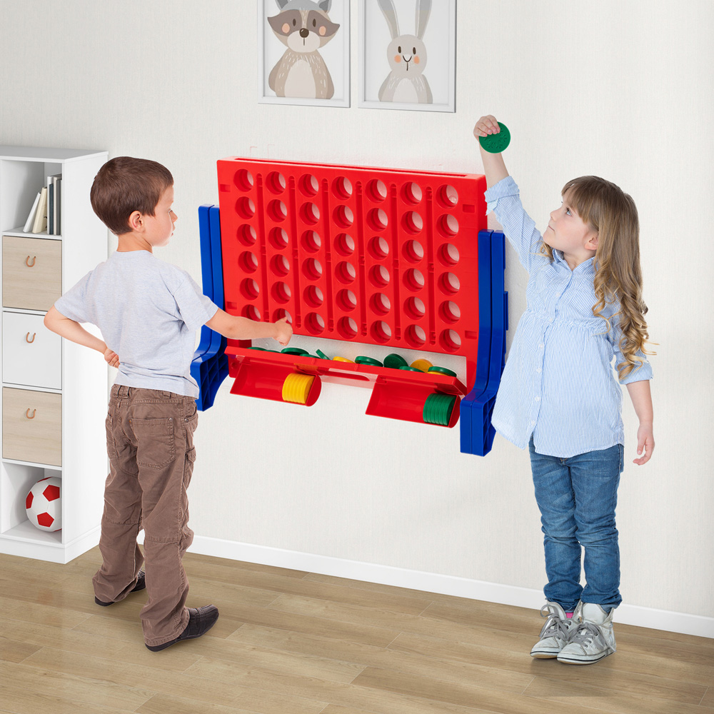 Engage your children in fun and creative activities with Giant 4 In A Row Connect Game Set. This versatile and interactive family game can be mounted on the wall or placed on the tabletop, offering endless entertainment and laughter for both adults and kids. Players take turns dropping chesses into the slots, aiming to be the first to connect four in a row horizontally, vertically, or diagonally. Resetting the game is easy, making it perfect for continuous play. The set includes a sturdy game board, 42 colourful chesses, 2 drawstring bags, and a convenient carrying bag. With foldable brackets and included wall mounting hardware, this 4-in-a-row game set can be easily mounted or used as a tabletop game. Its large size offers an unforgettable gaming experience, perfect for indoor and outdoor gatherings. The simple rules make it fun for all age groups, and the first person to connect four chesses in a straight line wins. The complete set includes a handbag, 42 colourful chesses, and 2 drawstring bags, ensuring the ultimate game experience. The lightweight design and included handbag make it easy to take this game wherever you go. Starting a new game is simple with the quick release and reset feature, allowing all chesses to drop out at once. The 2 storage trays attached to the bottom panel make it easy to collect the chesses without losing them. Made from durable and safe PP + ABS material, this 4-to-score game set is built to last. The round corners and burr-free edges enhance security, preventing accidental injuries during play.