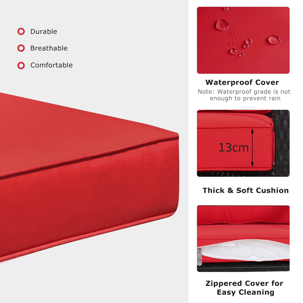 Immerse yourself in the comfort and durability of the Costway Red Outdoor Wicker Rocking Chair. Perfect for any outdoor setting, this chair features a high-quality woven rattan surface that's both water-resistant and capable of withstanding prolonged sun exposure. The robust metal frame enhances stability and is rust-resistant, supporting up to 180kg effortlessly. With its wide backrest and soft, removable cushion, relaxation is guaranteed. Whether you're looking to enjoy a good book, admire the scenery, or simply unwind, this stylish and practical rocker is an excellent choice for your patio, garden, or poolside.