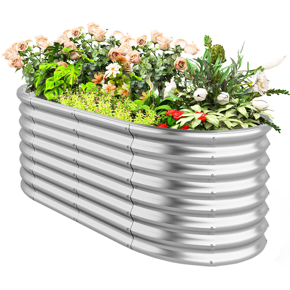 With its open-bottom design, this Costway Silver Round Raised Garden Planter promotes better air circulation and efficient water drainage, simplifying garden management and maintaining soil health. This bed is built to last with strong screw connections and thickened wave-shaped panels, ensuring stability and longevity. Ideal for a variety of plants, it allows you to create a diverse garden for a bountiful harvest. Assembly is made easy with illustrated instructions and complete set of accessories, and the dimensions of 165 x 80 x 60cm (L x W x H) make it a perfect fit for any backyard, maximising your gardening space without compromising on convenience. This 60 cm raised garden bed is crafted from sprayed and galvanised metal plates, which are rustproof and can withstand long-time outdoor use. Besides, the round edge design adds a touch of safety, preventing any accidental injuries. Featuring an open-bottom design, this elevated garden bed promotes better air circulation and efficient water drainage. This design not only helps maintain soil health but also simplifies garden management, allowing for easy access to the soil for planting, weeding, and maintaining your garden. Built to last, this raised garden bed can withstand various weather conditions. The strong screw connection and thickened wave-shaped panels provide extra stability, preventing deformation and ensuring your garden bed remains a reliable growing space for years to come. This raised garden bed is ideal for a wide array of plants, including flowers, vegetables, herbs, and fruits. This versatility allows you to create a diverse and thriving garden that can yield a bountiful harvest. Complete with illustrated instructions and all necessary accessories, assembly is a breeze. The overall dimensions are 165 x 80 x 60cm (L x W x H), making it a perfect fit for any backyard, allowing you to maximise your gardening space.